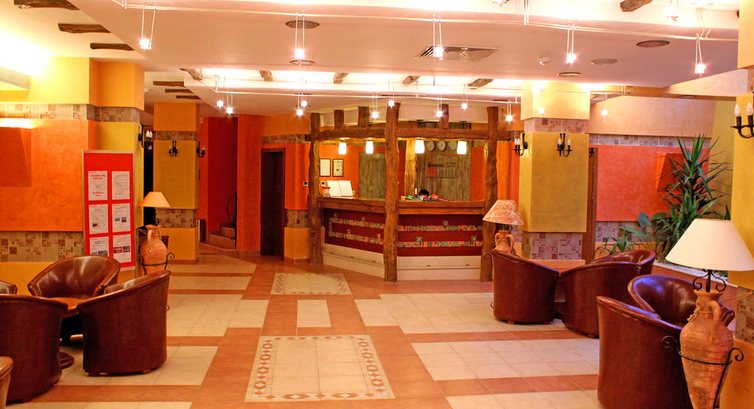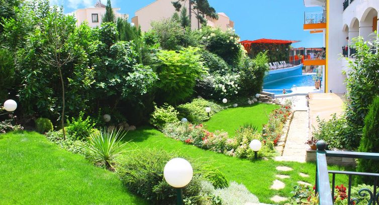 Об Отеле----- Отель очень хороший и красивый. Соответствует 4*. Находится на окраине курорта Солнечный берег. Вокруг отеля зеленые насаждения, деревья, внутри имеется очень красивый сад с цветущими цветами и кустарниками, за которым ухаживает садовник. Есть небольшой, но уютный бассейн. Бассейн убирают каждый день. Вся территория внутри отеля и где бассейн чистая.В отеле есть лифт, очень красивый холл там же и ресепшен. В холле всегда работает кондиционеры и поэтому прохладно.Есть ресторан где уютно и мило. Также в отеле есть Сауна маленькая, но очень хорошая кстати не дорогая мы пользовались.Есть фитнес и несколько тренажеров. Есть бар, но работал очень редко и маленький бар около бассейна. Также на верхнем этаже есть веранда но почему то всегда закрыта. На ресепшени есть сейфовые ячейки камера хранения. О Номере--- номера уютные большие. В номере 2-е односпальных кровати соединенные вместе покрыты пледом.Около кроватей светильники бра и тумбачки. Также есть столик, мягкий стул,небольшой холодильник,стаканы, 2-а мягких и раскладных кресла,шкаф большой для одежды,есть большое зеркало. Балкон большой с 2-я стульями, столиком и пепельницей.Вид из балкона на красивый сад и виден бассейн. Ванна с туалетом совмещены,все чисто,сантехника нормальная работала без сбоев. Душевая как бы отдельно. В номере есть кондиционер,работал нормально, телевизор с российскими каналами,в ванне фен,тоже работал хорошо,телефон. Об обслуживании----На ресепшени работали несколько красивых девушек. Все хорошо общались на русском и английском. На все наши пожелания и просьбы отвечали вежливо и хорошо,всегда улыбались. Всегда все понятно подсказывали и разъясняли дословно. Кстати приехали в обед все быстро оформили и разместили сразу. Номера убирали нормально,хотя бывало просто пропалесосят и все. За 2-е недели постельное белье меняли 2 раза, а плотенце меняли каждый день,мусор тоже каждый день убирали. Из номера у нас не чего не пропало и в вещах не кто не рылся, не чего такого замечено не было. Если оставлять периодически чаевые то на постели появится из плотенце всякие красивые скульптуры,но и приберут получше. Вообщем убирали нормально. Ресторан был большой тоже все чисто и официанты всегда вежливы и работали хорошо. Питание---- Питались мы в отеле тока завтраки. Завтраки были вкусные, выбрать было много из чего, но как и по всей Болгарии каждый день практически одно и тоже.Про ужин сказать не чего не можем,но кто питался из русских в отеле мы с ними разговаривали ужин был получше чем завтрак и разнообразный говорили что все вкусно. Да завтраки были как шведский стол.