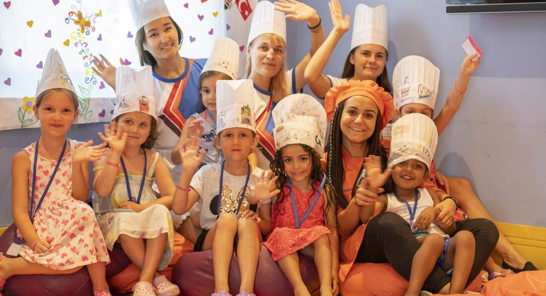 Ребята все классные. Очень стараются. Стандартный набор в течении дня: боча, волейбол, гимнастика, водное поло, дартс, развлечения около бассейна.