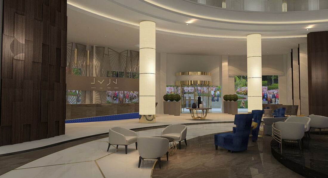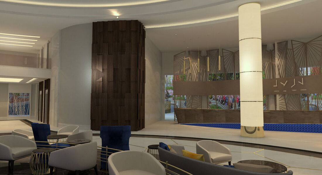 Сам отель - огромный, новый и красивый, НО. Бежево-синяя гамма мне категорически не нравится, но это чисто мои вкусы, абсолютно ни на что не влияющие. И еще на нижнем этаже в районе бара-кондитерской и кресел для отдыха ароматизатор воздуха не очень приятный...