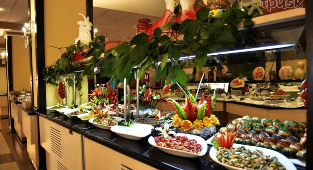 Питание неплохо,особенно по сравнению с другими отелями( слышала отзывы в автобусе по пути назад в аэропорт). Из мясного лидировала конечно курица, но была и рыба, и говядина, и баранина. Из овощей помидоры( вначале были противные, потом завезли хорошие черри,) огурцы вкусные, зелень, включая рукколу, капуста-морковка, салаты и закуски "вчерашней свежести"с майонезом обходила стороной, ну и конечно оливочки были, люблю их!) Из фруктов мандарины, яблоки, виноград, дыня, арбуз, слива, инжир, гранат(один раз). Сладкий стол тоже был разнообразным и вкусным, но до него не так часто доходило дело. Что касаемо спиртнрго, то лично мне понравился Ликер Шевтали(так звучит на русском), толи персик, толи абрикос. Был и Бейлис, но не тот что в дьюти, не ирландский, хотя пить можно.Виски наливали только с браслетами 5*, приходилось им наливать за двоих!)) Раки, водка, пиво не Эфес, вино кислятина-не понравилось.