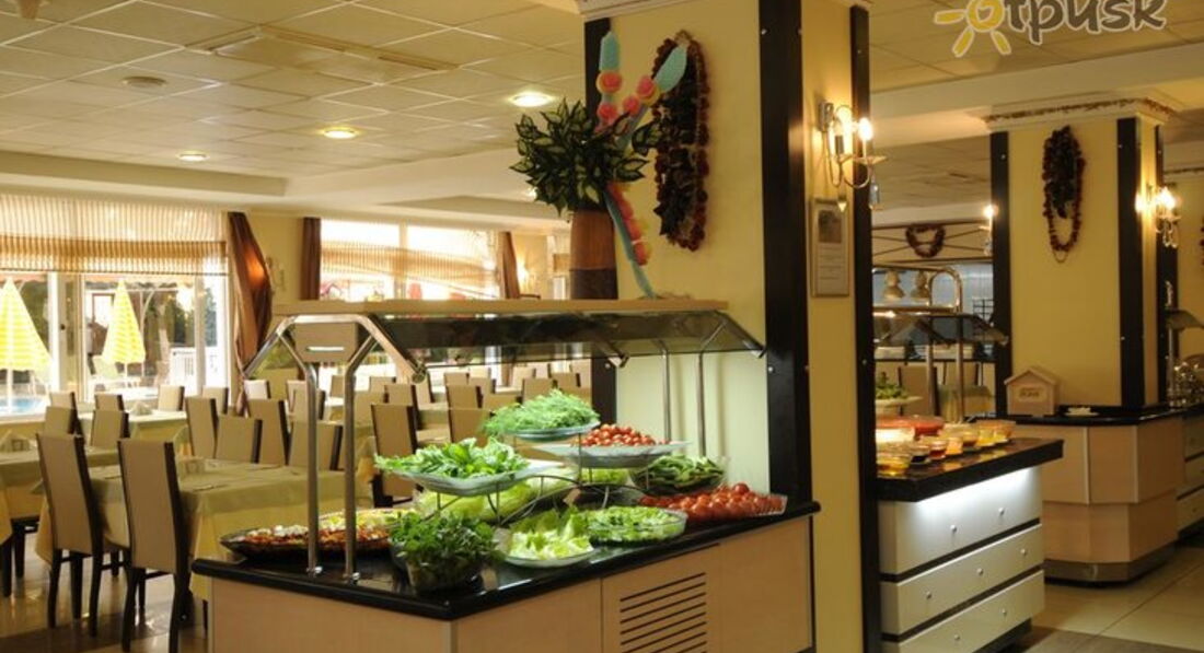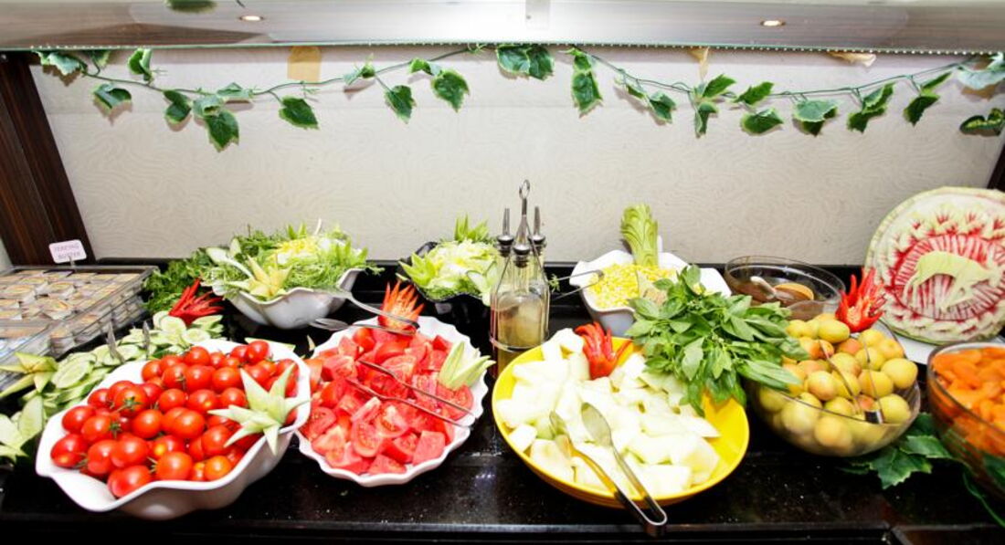 Так как народу в отеле было мало,наш ресторан был закрыт, питались в соседнем First Class 5*. Питание понравилось. Хотя большого разнообразия не было, кормили вкусно. На завтрак, обед и ужин было 4 вида фруктов (черешня, арбуз, крупная синяя слива, яблоки, персики, виноград, дыня). Удивила бедность сладкого стола, но потом решили, что это плюс. Не пришлось выбирать, что съесть, тортик или фрукты.