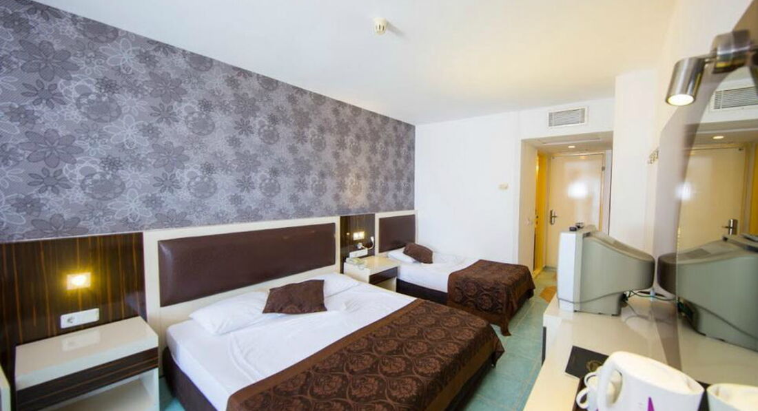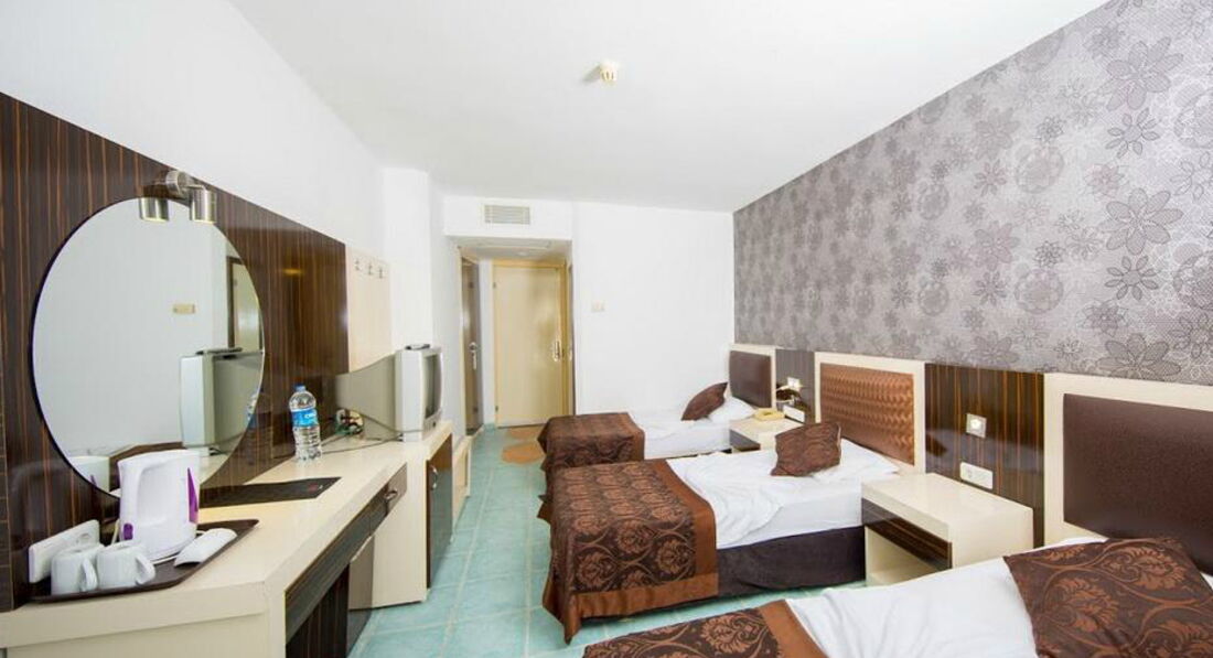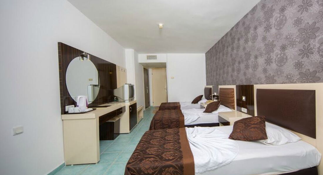 Отдыхали с мужем в июле 2016 года,в Турции были впервые,отель бюджетный,но сразу хочу сказать,что нам понравился!по первому требованию нам заменили номер(сперва нас заселили в номер,где были жёлтые пятна на кровати и в двери балконной трещина метра полтора) затем !заселили нас в четырёхместный номер с видом на море!в этом номере радовало все,кроме душа,т.к.сантехника протекала,в остальном все устроило!поскольку у хозяина отеля в собственности имеется ещё и пятизвёздочный соседний отель,то нам можно было пользоваться многими услугами 5*!питались мы в ресторане 5-ти звездочного отеля,бассейн,тренажёрный зал,бар,горки,анимация-все это тоже 5*!в целом отдых отличный,люди весёлые,еда вкусная,до хороших магазинов правда необходимо пройти прилично,но оно того стоит!пляж прямо через дорогу,к нему ведёт подземный переход,правда кругом галька,что не удобно,поэтому если вы собираетесь туда с детками,то Южный регион Аланья не совсем вам подойдёт!