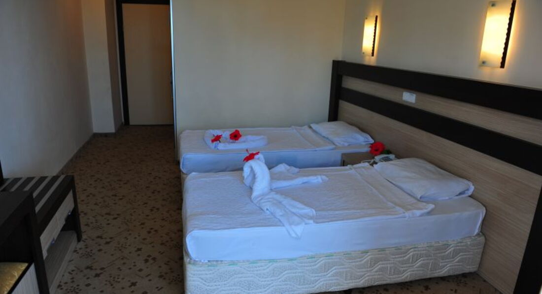 В отеле отдыхали, с подругой второй раз! Приняли как родных! отношение к постоянным клиентам самое хорошее, да впрочем , как и ко всем гостям. Немного подождали номер, чтобы время не терять позавтракали, поплавали в море. Номер чистый, уютный.. Удобное расположение номеров, все с видом на море! Пляж чистый!!! Очень хотелось сказать слова благодарности бармену на пляже.. Успевает ВСЁ! И порядок держать, и напитками угостить! Отдельное СПАСИБО нашим уже родным, за второй год, аниматорам Леночке и Караю! Как всегда: весёлые, доброжелательные, умеющие расположить к себе любого гостя! Отдых удался, не смотря на не очень хорошее питание. Мяса мало!!!! Остальное нормально, не объедаться приехали! Главное МОРЕ! СПАСИБО всему обслуживающему персоналу... Приедем Ещё!!!