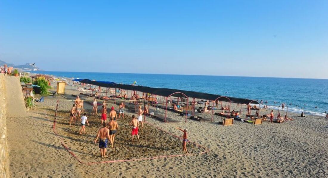 6) На пляже 2 раза в день волейбол, утром в 11:0 и вечером в 16:00 . есть бар напитки б/алкогольные бесплатно ,пиво 3 $ , делают лепешки после обеда (очень вкусные ) . Мелкая галька ,заход в море нормальный вполне . Есть местами плиты ,но их обойти нет проблем . Лежаков на пляже хватает , есть 2 душа , раздевалка . так же есть платные развлечения.