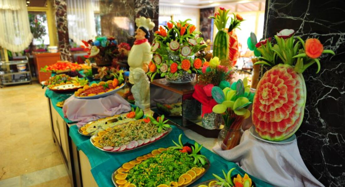 Включає: сніданок, обід, вечеря - шведський стіл; закуски протягом дня у барах готелю, алкогольні та безалкогольні напої місцевого виробництва. Свіжі соки – платно. Молодятам, іменинникам та постійним гостям – кошик з фруктами та вино.