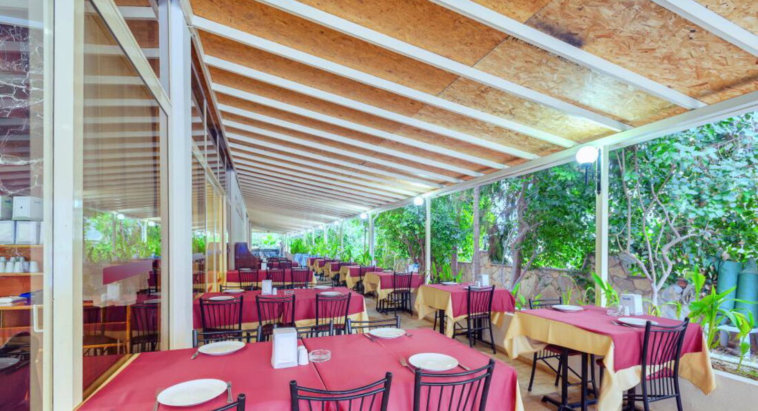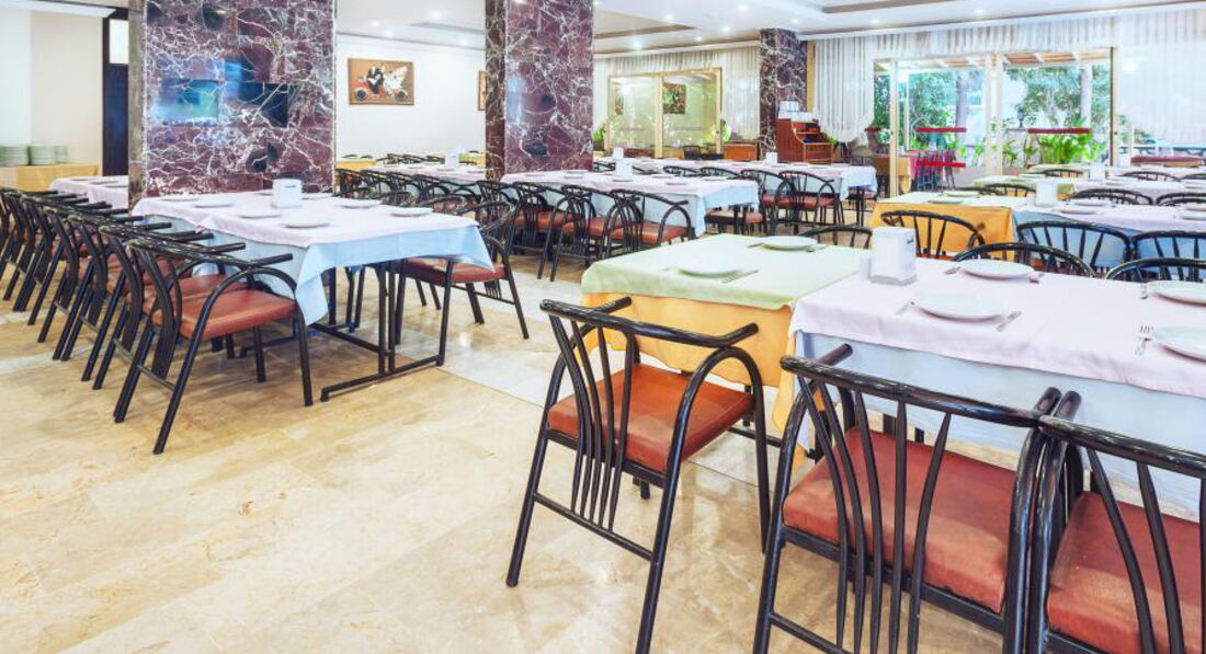 Бари та ресторани: головний ресторан розрахований на 100 осіб (критий, з кондиціонером, літня тераса, дитячі стільці), лобі-бар, бар біля басейну, бар на пляжі, диско-бар.
