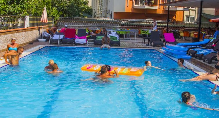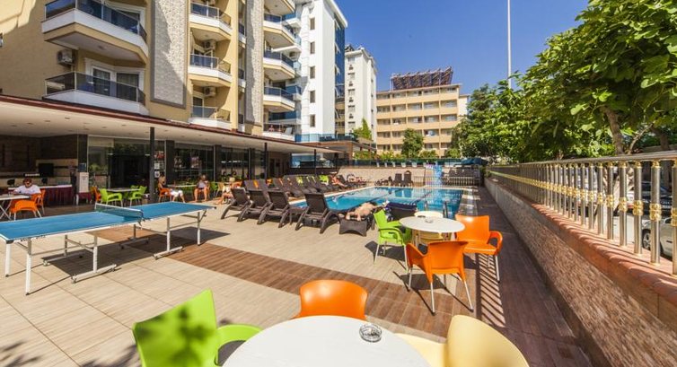 Отель городского типа - маленький,территории нет,анимация отсутствует,бассейн небольшой. Номера чистые,убирают каждый день.Питание хорошее для турецкого отеля,еды всем хватает.Алкоголь и напитки в баре местного производства,на любителя.Пиво - Эфес, нормальное, не разбавленное.