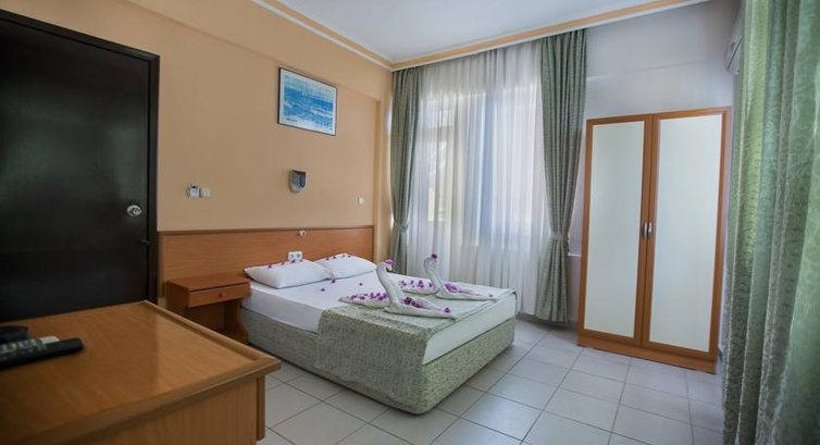 Отель предназначен только для молодёжного отдыха,чтобы приходить только ночевать и поесть,больше заняться реально нечем!Номера в отеле очень маленькие.Всё старенькое.Санузел с душем вместе также минимальны и естественно нету никаких ванных принадлежностей.Кормят по турецким меркам для данной категории(3 звезды)нормально,но без изысков. Минусы: убираются плохо,постельное не поменяли ни разу,полотенца редко,анимации нет совсем,бассейн маленький.Плюсы отеля: рядом с центром, можно ходить пешком или рядом автобусные остановки, пляж Клеопатры через дорогу.Брали экскурсии у Minister Tours(в одноклассниках есть их группа с таким же названием),их офис напртив пляжа №17.Брали Памуккале,Хамам,Каппадокию.Всё очень понравилось!Рекомендую!В Алании есть,что посмотреть!