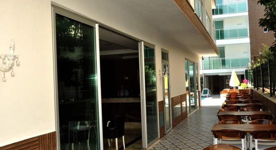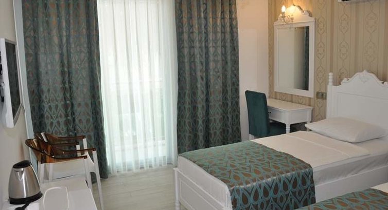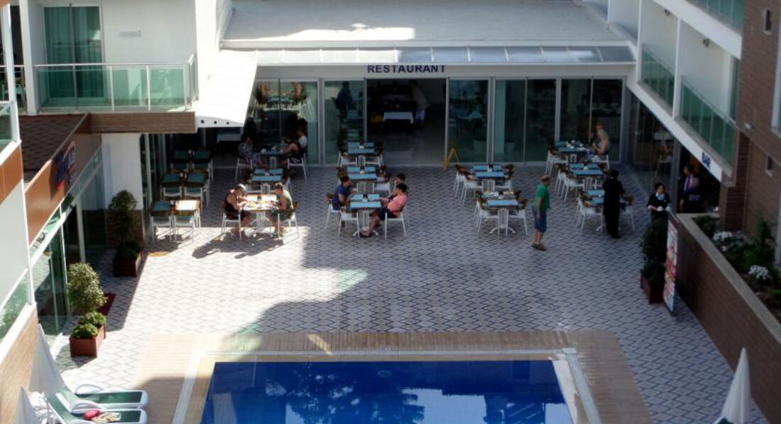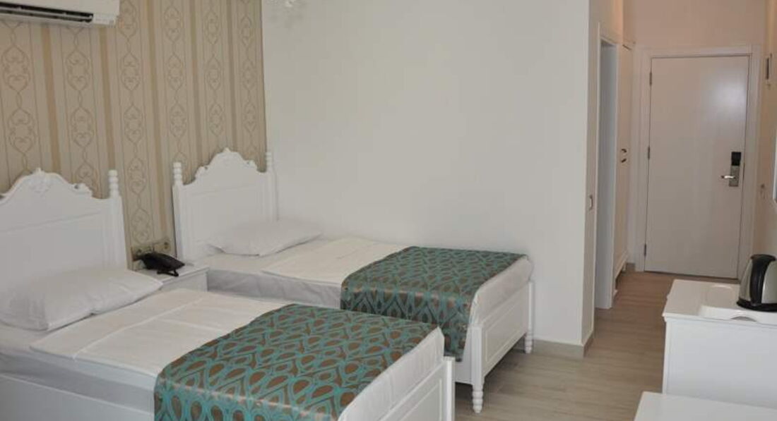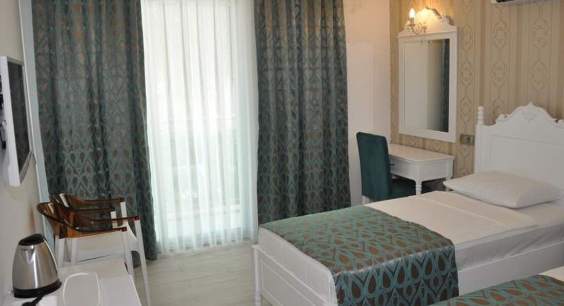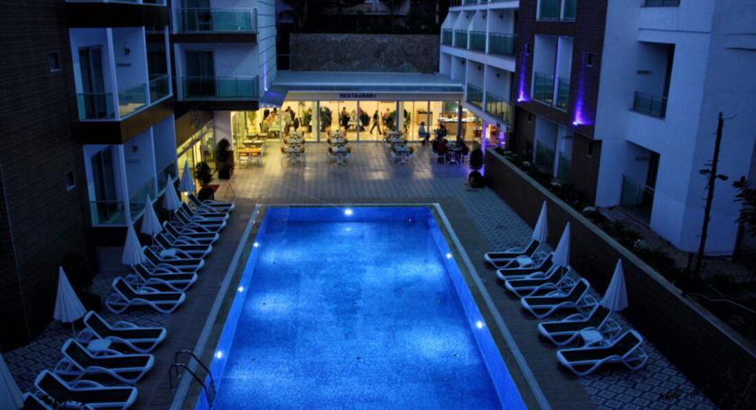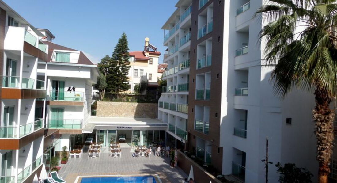 Отдыхала с парнем. Отель небольшой, номера хорошие. Девушки, возьмите с собой фен,в ванне он есть, но очень слабый. Уборка номера каждый день, чаевых не оставляли, поэтому просто убирались без изысков. Постельное белье за 5 дней не поменяли. Что касается питания, оно не особо разнообразное, но каждый для себя нашел блюдо. Фруктов практически не было, кислая дыня, недозревшие мандарины, виноград с косточками и яблоки..ну как и в Москве) Ничем новым не удивили. Тренажерный зал в отеле -это ужас)) Одно название, не рекомендую. Бассейн у отеля есть, но за все время там никто не купался, причина в том, что через дорогу потрясающий и чистый пляж. Не рекомендую ездить на пляж от отеля, он не такой чистый как 2 или 1. Лежаки платные, из плюсов только наличие Wi-Fi и бар. Так что берите с собой полотенца и размещайтесь на песке. В городе полотенце стоит примерно 20 лир. Кстати в отеле везде ловил интернет, смотрели ролики, инстаграм, все быстро работает. Сейф в отеле платный, не покупали, убирала все ценные вещи в чемодан, инцидентов с воровством не было. Номер был 420 вид на гору и на бассейн, неплохой) У кого-то были и хуже. Отель без детей - это большой плюс) Отдыхают в основном русские парочки или иностранцы пожилого возраста) Антмации нет, что нас вполне устраивало. Итог - отель соответсвует цене и качеству. 4 звезды вполне заслужено.