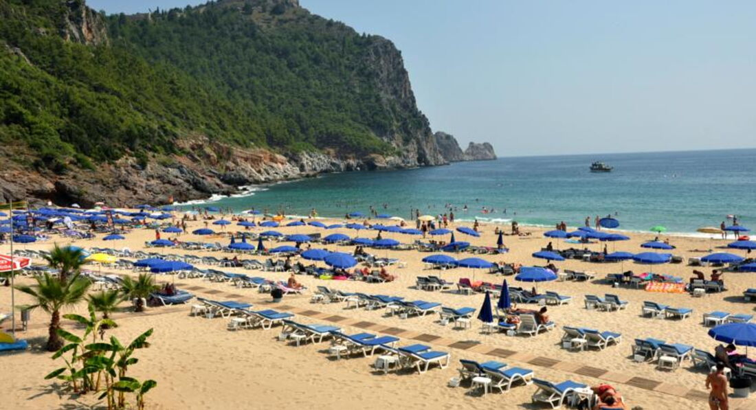 4. ПЛЯЖ. Ну главная фишка Аланьи - это клеопатра бич - искусственный пляж из белого рисового песка. Он делится на пляжи №1,2,3 , кстати, они ничем не отличаются, только на третьем уже имеется примесь вулканического песка. Идеальное сочетание волн, большой горы рядом и красивого песка. Лежаки и зонты платные, можно по-дешевке купить зонтик, а так, все лежат на своих полотенцах. До пляжа очень близко от отеля, как уже писал.