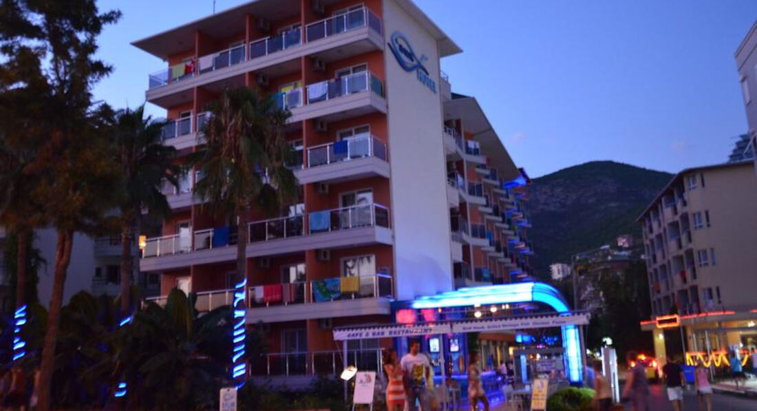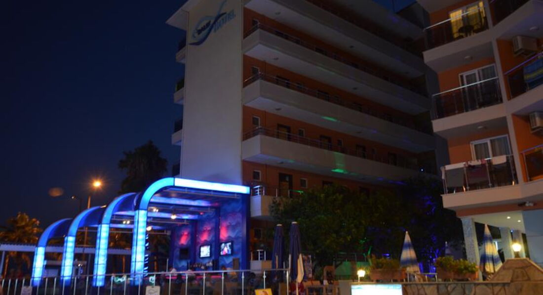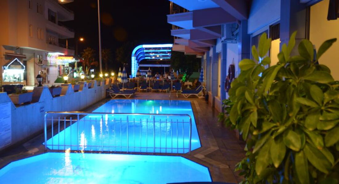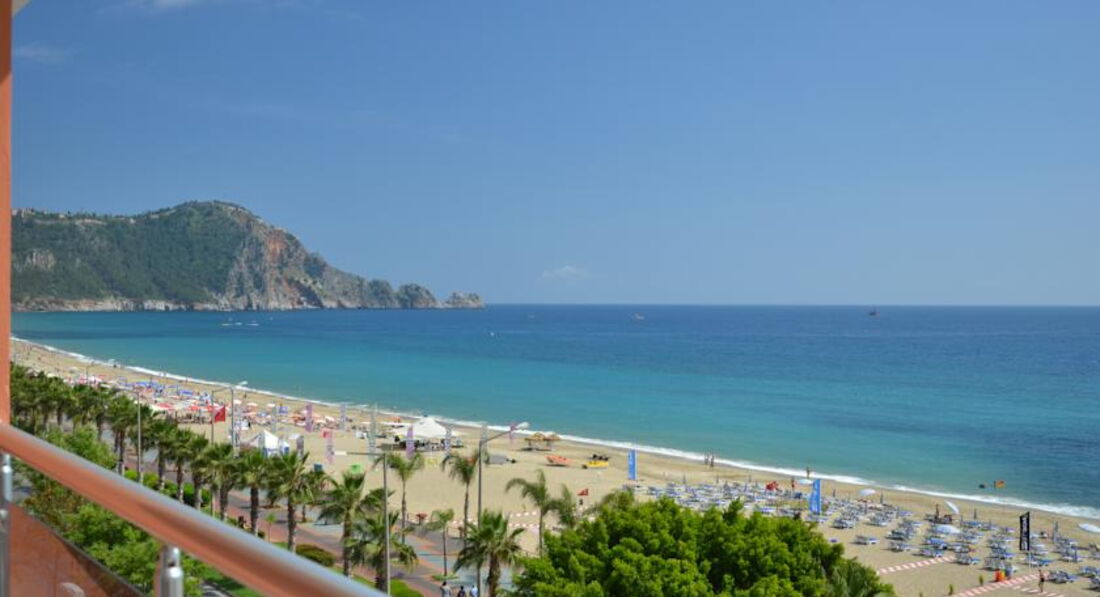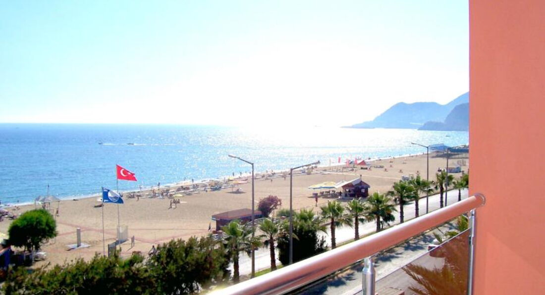 Отель находится на въезде в Аланию, на набережной через дорогу от пляжа Клеопатры, примерно в километре от центра города - порта.