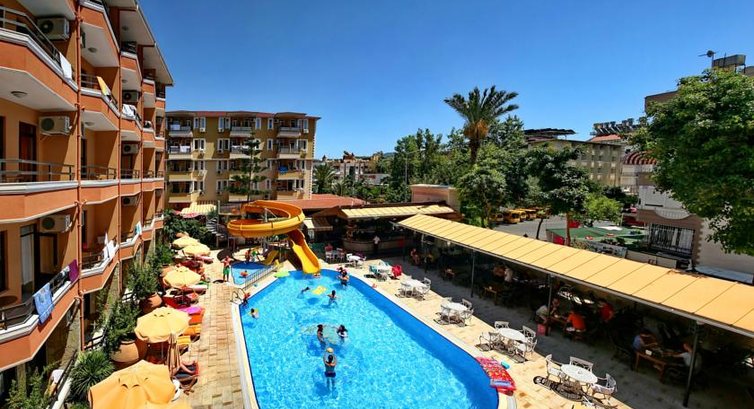Данный отель находится недалеко от пляжа Клеопатора, метров в 80-ти. У отеля есть оборудованный частный пляж, водная горка в бассейне, турецкая баня. Бесплатный вай-фай интернет есть практически по всей территории (у бассейна, и даже в номерах).