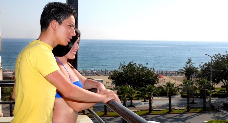 Отдыхали в августе 2014 года. Так получилось, что за лето были в Турции во второй раз. Искали недорогой отель в центре Алании. Хотя как недорогой, очень средняя цена была в этом отеле, видимо в расположении все дело. Это самый большой и единственный плюс в этом отеле. Выходишь вперед, немного правее и вот он - пляж Клеопатра!