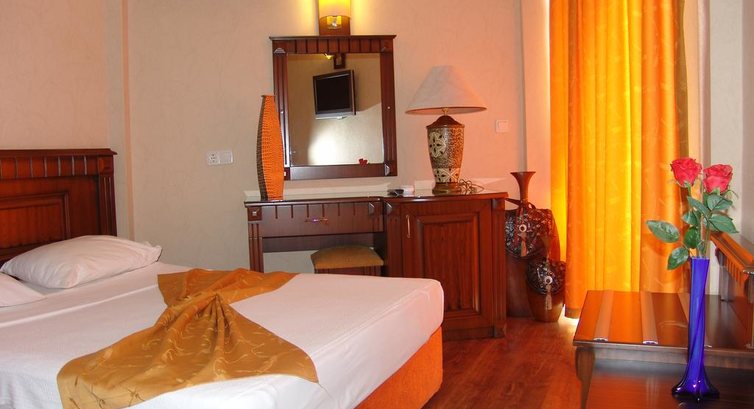 Общее впечатление от отеля хорошее,на твердую четверку, единственное подвёл тур оператор - Библио Глобус, гид не посетили нас в отеле ни разу( год назад пользовались их услугами в Кемере и тоже были не довольны,ни кому бы их больше не посоветовала.) Номер у нас был довольно таки просторный и чистый, уборка каждый день по желанию,кровати удобные,минусы - не было пульта от кондиционера (может из-за того что был май и не так жарко), не запиралась дверь на балкон и ужасная слышимость - на против действующая мечеть с громкоговорителями. Питание для трешки очень даже хорошее(была в четверках и есть с чем сравнивать), всегда свежее,была курица, рыба, фрукты,персонал вежливый, но по русски плохо понимает,т.к. отдыхают там в основном немцы. Wi-Fi бесплатно только первый день,потом 2 евро в сутки. Территория отеля маленькая,но мы там и не находились, когда по одну сторону от отеля шикарный пляж Клеопатра, а по другую красивый город и горы, есть где провести время. Развлечений в мае в отеле ни каких не было, один раз только в субботу музыкант поблямкал на гитаре. Есть собственный хамам, но мы туда не ходили, так что ни чего про него сказать не могу. Пляж городской, собственной территории нет,но загорать на своих полотенцах на теплом мелком песочке тоже очень приятно. Выбирали отель из-за очень близкой доступности к пляжу Клеопатра и ни сколько не пожалели,отдохнули отлично! Так что кто едет за солнцем, морем и приключениями за небольшие деньги(если конечно не смущает мечеть) - советую!