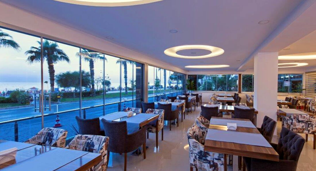 Добрый день, только вернулась из отеля, вот что я хочу рассказать о самом отеле.Да, огромный его плюс рассположение.На пляже все платно,- зонтик, лежак и матрас стоят на 1 человека, если договорится 2 доллара, на целый день, при условии если вы оставляете полотенце на лежаке, если куда-нибудь уходите с пляжа на неопределенное время. Пляж песок.Теперь про питание и выпивку:, ...Еды хватало всем, мясо было каждый день, раз в неделю делали гриль., несколько раз давали жареную рыбу, салаты были всегда, разные, но в основном, из огурцов помидоров, зелень разная,салаты с яйцами и местной колбасой, наподобие нашего ольвье, салат с бобами, и кукурузой, но и все в таком духе, ....не скажу что еда прям такая однообразная, но повторялись конечно, не без этого. Мне очень понравилось как они готовят мясо, и рис, а также тушеные овощи....., только вот плохо, что горячее в основном все острое, и много не съешь...., очень хотелось борща)) Супчики были, но они все растертые, одна вода, с приправками....не очень(. Официанты все молоденькие, красивенькие, и милые, ни кто не разу не грубил, наоборот, ходят шутят, а как они любят маленьких детей, каждый подойдет по голове погладит, за щеки подергает, просто прелесть., и все всегда ходят в белых рубашках,всегда чистые и опрятные)В баре напитки бесплатные с 10 утра до 11 вечера потом за доп. плату, - пиво за 3 у.е., водка 5 у.е, напитки в принципе все нормальные пить можно, в любом количестве, т.к. опьянеть тяжело....пьёшь целый день и не в 1 глазу..)), бармены все приветливые.но проблема в том, что никто не знает русского, только англ, и немного немецкий, как я не старалась выучить их русскому,особо не получалась, да повторяют за мной...но потом могут сказать только "привет", "как дела", и понимают, когда просишь их тебе что -нить налить)Рядом с отелем есть супермаркет "Мигрос", там есть все необходимое,.. метров в 100 там есть и одежда и бытовуха, вообщем все что хотите и цены там дешевле чем на рынке, да и вообще во всех магазинах дешевле чем на рынке, цены в лирах, но берут все: и доляры и евро, только сдачу дают лирами, и не всегда по выгодному курсу для вас.Сам город очень красивый, много зелени, и очень много цветов, пальмы....ммм.....так красиво.ездили на экскурсии.покупали естественно не гидов отеля так как всё дорого у них и всё тоже продают недалеко от отеля в 150м в сторону центра дальше мигроса ест тур фирма екскурсионное бюро BULENT ELBELLER TRAVEL.там работает парень Джемал .Очень хороший человек, говoрит по русски, дает советы, помогает, предлагает куда можно съездить,что посмотреть, мы просто забегали поболтать с ним, Экскурсии накоторых мы были и остались в восторге: ( все брали у Джемала - в отличии от других агенств, есть страховка (!!!)- это не мало важно там)-советую обязательно съездить на рафтинг. Эмоций море, адреналина тоже) 2 часовой спуск по реке горной на лодке с инструктором. Воспоминания незабываемые. Со стороны кажется дико страшно, на самом деле это не так)) Вовремя спуска вас снимаютна камеру, после делают быстро монтаж. Делают очень хорошо, с эффектами,с музыкой. Делают и фото красочные очень.Так же можно покататься на яхте днем, пещеры, глина и т.д.