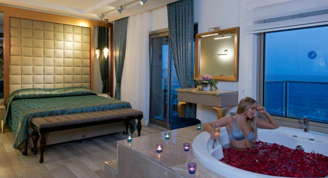 Отель небольшой, номера тесноваты, но есть всё необходимое.Номер был маловат,но современный,с чайником, холодильником, сейфом кондиционером и Wi-Fi .Были принадлежности для приготовления чая и кофе, которые обновлялись каждый день, а также вода в бутылках.Уборка проводилась ежедневно.Полотенца и постель меняли тоже ежедневно. Еда не особо разнообразная, но всё было вкусное. Но!,в ресторане нет кондиционера и это было ужасно.Территория отеля ограничивается маленьким бассейном с лежаками, там же столики у бара.Бар работает с 11.00 до 23.00. Из алкоголя все стандартно: пиво,вино красное и белое, виски,джин,спрайт,кола.На цокольном этаже хамам. Кто был в городском хамаме,тому точно непонравится отельный хамам.Стоимость $25 за 1,5 часа за одного человека.Мы взяли хамам у ребят в Minister Tours(офис напротив пляжа №17),в разы дешевле и по времени 3 часа наслаждения!!!Экскурсии все тоже у них брали. Море через дорогу.Пляж Клеопатра -песочек и очень мелкая галька,но вход в море плита очень скользкая.Лежаки и зонты платно.Расположение отеля- 2 минуты от пляжа, 20 минут спокойным шагом от центра,есть где погулять и что посмотреть. Набережная до самой горы – красивая с пальмами,кустами,деревьями и лавочками.