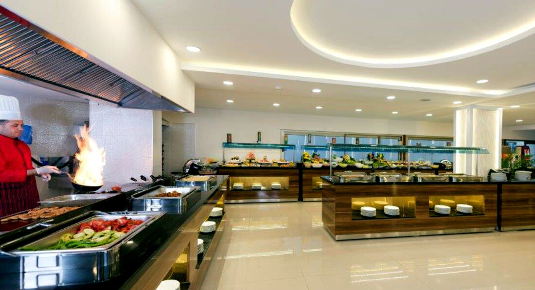 Сюрприз номер два. На следующий день пришли на завтрак в 8-00, а нас не пустили. Пустили минут через 15 и в спешке стали готовить булочки в печи, да так спешили, что они все сгорели, столовую завалило дымом, сработала пожарная сигнализация... Сразу видно какие тут "крутые" поварята трудятся... Про питание могу сказать, что по мне лучше бы его совсем не было в отеле, т.е. не было включено. Меню очень скудное. Мясных блюд мало. Один раз давали рыбу гриль, иногда бывает курица с индейкой, а иногда давали только одни нагетсы и жареные котлетки из дешевого фарша. Самое вкусное что было на обед за все время это жареные куриные ножки. Питанием я остался неудовлетворен и оценка соответствующая, то бишь двойка . Пугать никого не хочу и голодными вы скорее всего вряд ли будете, но и большого удовольствия точно не получите.