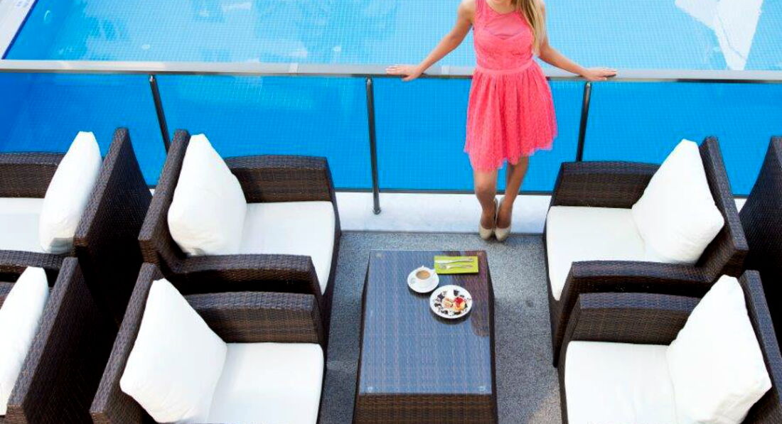 Если проголодались между приемами пищи, можно зайти в лобби с открытой террасой, и выпить чашку чая, кофе или стакан сока с песочным пирожным, включено в концепцию. Алкоголь там тоже подают. А можно просто посидеть на диванчике, жару переждать, полюбоваться набережной и морем.