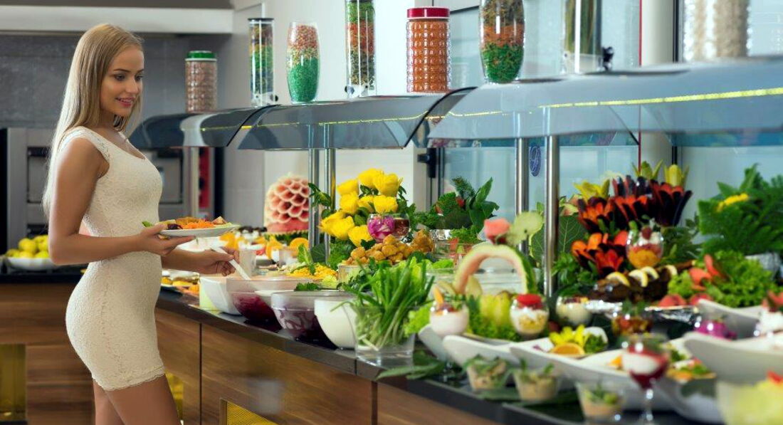 На обед честенько не было мяса, только нагетсы или что то соевое. На ужин мясо или рыба были, и на том спасибо. Ни на обед, ни на ужин нет свежих овощей, только заправленные салаты. Первое правило осторожного туриста - никаких салатов )))) к этому столу вообще никогда не подхожу.
