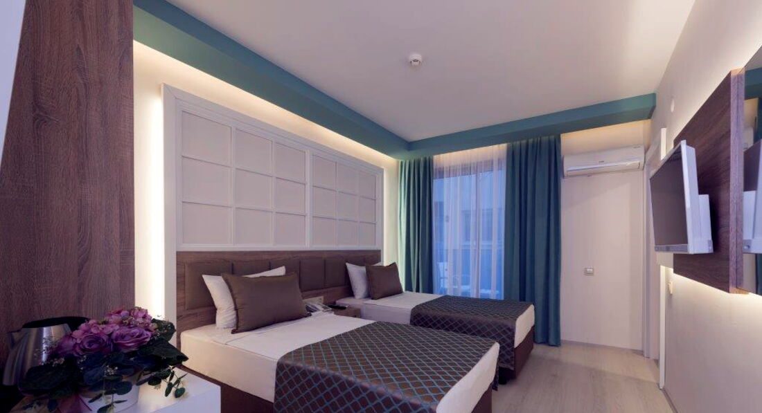 К Турции, отношусь так себе, отдых для среднего класса, изрядно попсовый. Однако после сезона непрерывных дождей и майских холодов городе на Неве был вынужден лететь за солнцем и морем туда где не очень дорого, в Аланью. Возможно место выбрал еще то - не самое комфортное время для отдыха в Турции, это я ощутила в полной мере, когда после выматывающего трехчасового трансфера вошла в номер. Кондиционер, конечно, не справлялся, минус номеру, к тому же выключается, когда уходишь из номера. В номере есть все самое необходимое: ванная с душевой кабинкой, порадовало наличие полочек для мелочей в ванной. Минусом были озера воды на полу после пользования душем(из-за неправильного стока).Также в номере был телевизор(2 российских канала),электронный сейф, холодильник (ежедневно пополняемый 1 бутылкой воды), фен, чайник (вот вопрос, чай - кофе должны пополнять также ежедневно? А то мне за 8 дней это сделали лишь дважды, но это при системе all uncl не критично). Есть балкон с двумя креслами и столиком, но я его использовала только для сушки купальника днем. О питании скажу коротко: было вкусно, повара очень старались! Но! В ресторане нет кондиционера, или его не включали. Сейчас в мае терпимо, но в жару - самая вкусная еда будет не в радость при атмосфере русской бани... Территория отеля ограничивается маленьким бассейном с лежаками, там же столики у бара. Море в шаговой доступности, песчаный пляж. Лежак и зонт — за денежку, там же есть бар с платными напитками разных градусов, начиная с нулевого, душ, туалет. Вода в море чистая, ее температура пригодна для купания, теплая, волна вечером даже обдает паром! Рядом с отелем супермаркет "Мигрос", там все в разы дешевле, чем в дьюти (таких "задранных" цен не видела нигде!) Плюсом "Мигроса" является наличие кондиционера. Оплату принимают в любой валюте, но сдачу дадут в лирах, по курсу схожему с официальным. В отеле есть свой хамам, но хамами Турцию не удивишь, они тут повсюду! Хотела взять экскурсию в какой-нибудь СПА центр покруче. По отзывам нашла здешний министер тур, вот только карту бы прицепили. Искала, но не нашла. Ребята, вы точнее себя обозначайте, что ли. А впрочем и сама покаталась по Аланьи, с таксистами вполне можно на полу русском, полу английском договориться. Такси тут не пример питерским. Теперь отель (после ремонта) носит не 3, а 4 звезды. Словом, рекомендую, особенно тем, "недорого и без заморочек"!