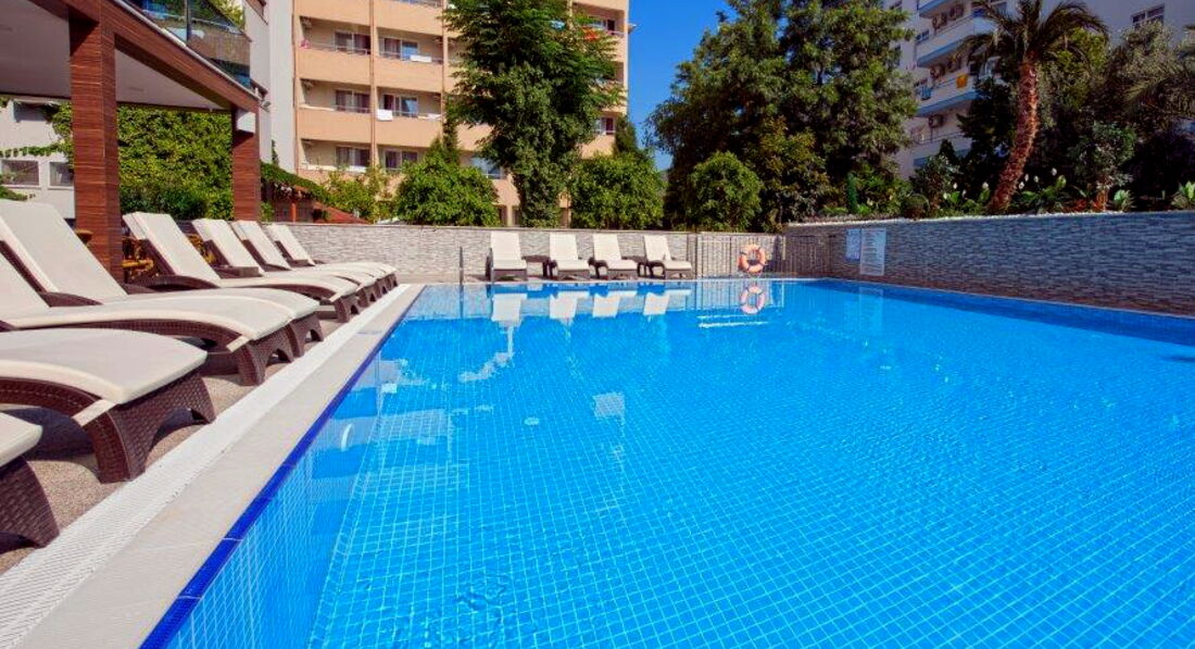 Отдыхали семьей с 28.06.13 по 15.07.13 в этом отеле впервые. В Алании уже 4й раз. Очень приличный отель для семейного отдыха. Номера, правда маленькие, но есть и люкс кому нужно. Отелю необходимо чуть поправить дизайн, отреставрировать некоторые детали интерьера, заменить старые ручки дверей, в ванных комнатах кое-что и он смело может заявлять на 4 звезды. Дело в том, что кормят здесь потрясающе, можно выбрать себе по-вкусу блюда. Дочка уже через 2 дня сама хорошо ориентировалась в предлагаемых блюдах. Есть и европейские блюда и есть блюда турецкой кухни. А какая выпечка - просто супер! И телятина, и печенка, и говядина - мы реальнро были удивлены. Ни дня без мясного! И все в сочетании с овощами очень вкусно. Все блюда разнообразные, за 18 дней ни одного повторяющегося блюда. Шеф-Повара исключительные. Весь персонал очень воспитанный, не назойливый, исполнительный. Уборка в номерах ежедневная, смена белья регулярная. Есть даже свой полицейский в отеле! У нас были белые браслеты - у нас лежаки, напитки на пляже и зонты были включены в стоимость. Пляж через дорогу в 100 метрах от отеля. Единственное нет анимации, только раз в 15 дней приглашают певцов, они поют после ужина, так на троечку. Нас это не смущало, есть город, прекрасный парк, детские площадки в парке. Нам все понравилось.