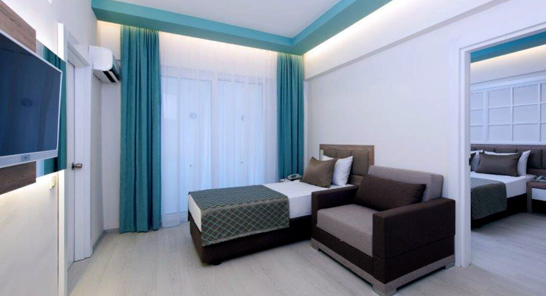 1. Номера. Отель конечно нуждается в ремонте. По приезду нам выдали ужасные номера (мы ездили с ребенком 5 лет и двумя мамами): нам дали маленький номер с двумя маленькими кроватями, мамам дали номера в старом корпусе, одной маме дали неплохой номер, второй дали просто ужасный - грязное белье, сломанный бачок в туалете. При общении на ресепшене мне сказали, что сейчас номеров нет, но завтра они смогут поменять. Честно, не поверила. На следующий день утром я подошла и объяснила все еще раз, на листике девушка написала номера новых комнат и сказала когда можно переселиться. В итоге нам дали номер по больше с одной большой кроватью и одной по меньше, мамам тоже поменяли, одной маме дали даже номер с видом на море! И все эти манипуляции без каких-либо дополнительных денег. Правда, муж потом дал девушке 10 лир (5 долларов). И кстати, общаться надо на английском - на русском очень мало кто понимает.