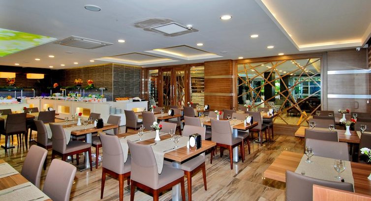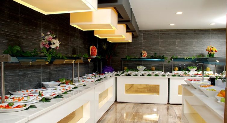 Ресторан в отеле маленький и душный, и прямо там готовят блюда на гриле. Очереди за едой были всегда, хоть в начале обеда-ужина, хоть через час. Можно поесть на улице, но там со всех сторон курят. Питание в отеле прекрасное! Респект и уважуха поварам! Вкусно все. Мясо, рыба, курица, десерты и даже салаты, которые я никогда не ела в других отелях- все приготовлено с любовью и умением. Официанты очень внимательны и расторопны, все убирают быстро и незаметно. Бармены молодцы, очередей к бару не создают, обслуживают всех оперативно и делают вкусные коктейли.