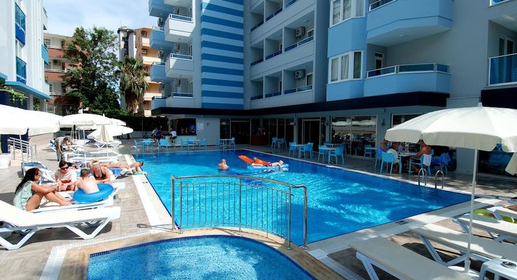 Путевку брала через Коралл Трэвэл. Полет Сургут-Анталия-Сургут прошел без задержек рейсов. Встретили в аэропорту рано утром, доехала на микроавтобусе до Аланьи за 2,5 часа с учетом остановки. Приехала в отель около 9 утра, думала придется ждать до заселения 14-00. Но нет- заселили сразу без "взяток", успела на поздний завтрак даже (он до 9-30). Номер на 3-м этаже (2306) чистый, просторный, ванна с туалетом тоже порадовали (свежий ремонт и новая сантехника) с большим балконом (стандартный номер брала), правда кровати две полуторки -сдвинула сама. Сейф платный- не пользовалась- ничего не пропало. Шумоизоляции нет - если говорили на этаже- было всё слышно. Уборка ежедневно- понравилось что убирали номера женщины. Замена белья где-то 2 раза в неделю. Пляжные полотенца в номере -бесплатное пользование. Вай фай в номере никакой, но в зоне ресепшена отлично (особенно по утрам скорость классная). При заселении дают памятку по отелю на русском языке. Очень внимательная и отзывчивая девушка на ресепшене - но тяжко с русским языком (Омар разговаривает чуток). Ломанный английский тоже пойдет! Отель рассчитан в основном на Великобританию, Германию и Скандинавию, РФ- малая часть. Территория отеля небольшая довольно ухоженная, два маленьких бассейна, чистые, ни разу не купалась и не загорала (тусуются одни иностранцы). Везде чистота! Ходит бесплатный микроавтобус до пляжа, расписание может меняться. Первый рейс в 9-30 - особо русских не радовал. Загорала уже с 8-30 сразу же после завтрака ходила на пляж пешком (около 15 мин.). Лежаки, зонты бесплатно. Пляж (номер 14) и море супер! По цене вдвое дороже напитки и еда (брала всегда с собой что-нибудь), вай-фай есть- но не пользовалась. Первые два ряда лежаки уже с утра с полотенцами- для иностранцев в основном, т.к. платили денежку и заказывали много с пляжного бара. На пляже туалет вам скажут платный- 1 тур.лира, но некоторые, в т.ч. и Я ходили бесплатно! Вещи не пропадают, порядок на пляже, ходит даже полиция. Анимация никакая, проходит 3 раза в неделю с 21-00 до 22-00ч. Но зато можно походить по городу и в дневное и в ночное время. Аниматор за 10 турец.лир отвезет в клуб (и обратно привезет). Для детей есть мини-клуб но девушка по русски не говорит, считаю что отель не для маленьких детей. Еда вкусная, мясо и рыбы достаточно, но не очень разнообразная. Очень много сладостей: давали мороженое, похлаву, разные пирожное, торты. Из фруктов: арбузы, дыни, абрикос, черешню, сливу, нектарин, апельсины, яблоки, груши, виноград. Мне за три недели не хватало русского борща и кефира. По поводу экскурсий, мой совет - торгуйтесь со своим гидом- они тоже люди и всё понимают! На баре нет разнообразия в алкогольных коктейлей - для меня большой минус. Сервис очень хороший. Везде камеры, это тоже своего рода плюс - ведётся контроль в целом за порядком в отеле.