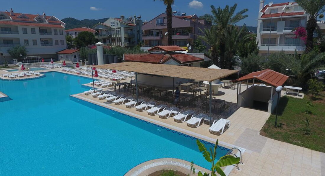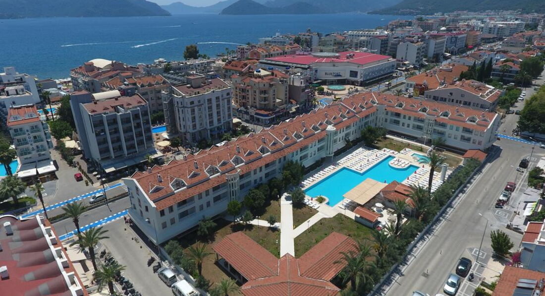 Готель складається з головної та додаткової будівель. Готель розташований на відстані 650 м від центру м. Мармаріс.