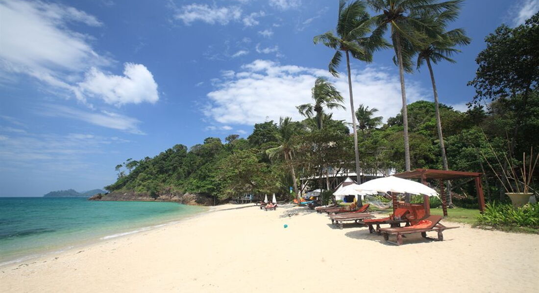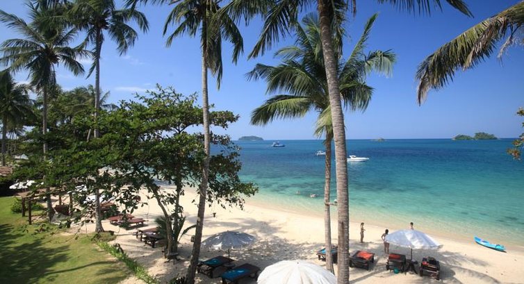 На західному березі острова Ко Чанг, на пляжі Kai Bae Beach, на березі моря.