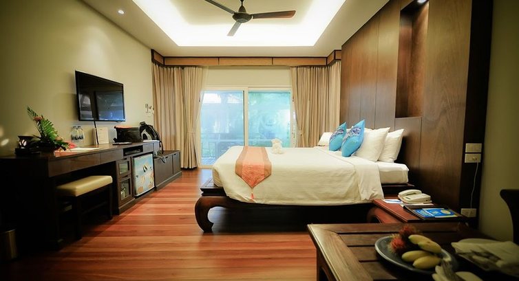 По данному отелю сложилось впечатление, что персонал, легко сказать, не любит русских туристов по сравнению с немцами))))По размещению, жили в улучшенном делюксе, понравилось все, кровать просто громаднейшая, спать можно впятером)номер убирали раз в день, всегда очень чисто, нареканий нет.Номер находился в десяти метрах от пляжа, дорожки всегда подметали, так что обувь вам в отеле не понадобиться.С питанием все плохо, европейцы уплетали все за милую душу, но вот нам, за 12 дней от омлета и яичницы тошнило и воротило, над нарезанными фруктами пару раз летали мошки, скудный выбор по фруктам, за все дни только ананасы, арбузы, манго и несладкие дыни.Выпечка:только круасаны. Свежевыжатых соков там нет-забудьте про это.Если во Вьетнаме мы упивались разными фрешами, то тут их просто нет, я думаю, что лень, так как на территории отеля висели ананасы, кокосы.Один раз ужинали в ресторане отеля, цены завышены, как и по всему острову и все не вкусно.Первоначально, когда ехали на остров, думали морепродуктов объедимся, итог, кроме маленьких креветок, кальмаров и морского окуня по немыслимым ценам(в москве дешевле), вы ничего не попробуете.По территории отеля-большая, утопает в зелени, никто никому не мешает, но сходить погулять по берегу вечером, в одной стороне другой отель, который заканчивается скалами, а в другой стороне, река , которую только можно переплыть.Развлекательная программа, возможно мы были не в сезон, поэтому ничего не было, кроме последнего дня, тайки танцевали в своих костюмах.С местами возле бассейна, дела обстоят не очень, так как в отеле 90% европейцы, они все тусят возле бассейна, спрашивается, что приезжали, с таким же успехом можно и дома в бассейн походить)))хоть и запрещено с 8 утра занимать лежаки, штраф за это, но все равно все забивают, так что любителям поспать, в 11 утра возле бассейна мест не будет, тем более, кто планирует ехать в сезон.На пляже много лежаков, там что на пляже разместиться будет не проблема)Пляж чистый был, убирали постоянно, так как отель находиться в заливе, то волн нет вообще, так что любителям попрыгать на волнах не сюда.Вода кристально чистая, дно видно даже на глубине.Справа от отеля есть пирс, так там очень много рыбок плавает, очень красиво.За вечеринками нужно ехать на вайт санд бич, знаменитый х-бар, но каждый день не накатаешься, дорого выйдет в итоге, да и после 11 ночи очень тяжело найти такси обратно, а пешком очень далеко не осилите. Шоппинга как такового нет, если поедите на водопад клонг плу, при водопаде магазин, так вот там всего завались от косметики , сувениров до кожи, подушек из латекса.Водопад красивый и дорога к нему по джунглям, стоит сходить.Питались в кафе березка, так как без русской еды не можем(пельмени, борщ), креветочки, а самое вкусное это морской окунь на гриле, очень вкусно.Пицца рядом с русским рестораном, там ее держать итальянцы.Мое мнение: в Тай больше не поеду, пока только хочется вернуться во Вьетнам))))