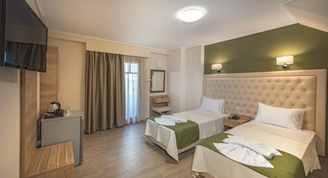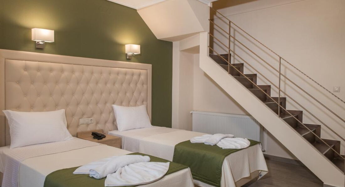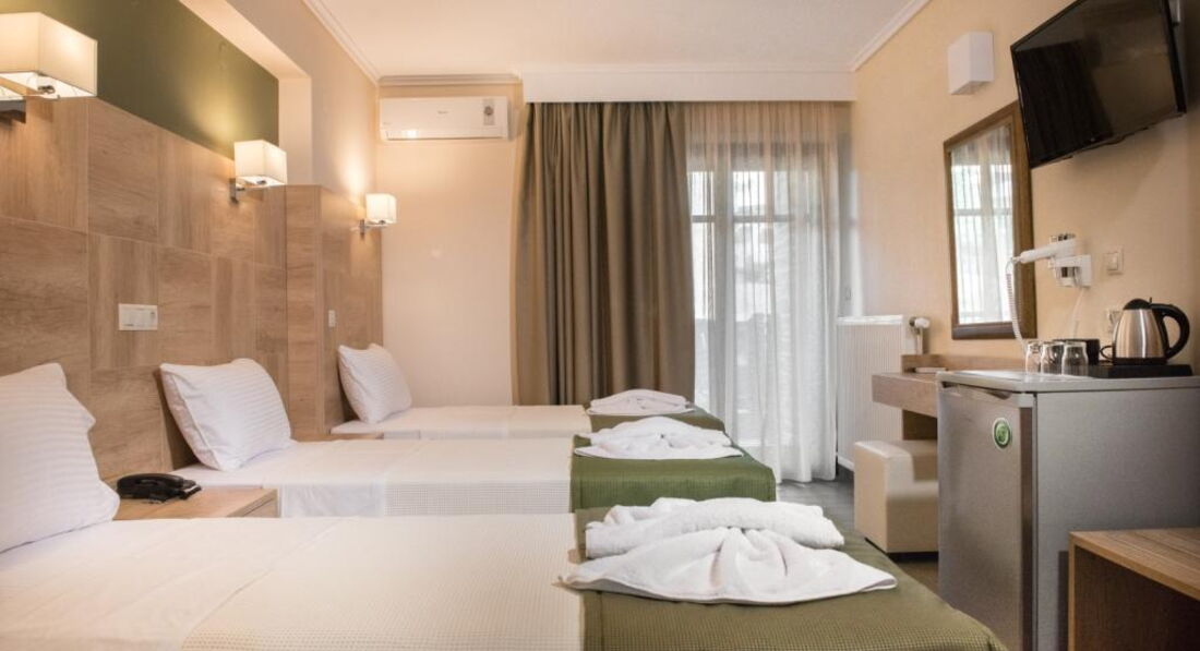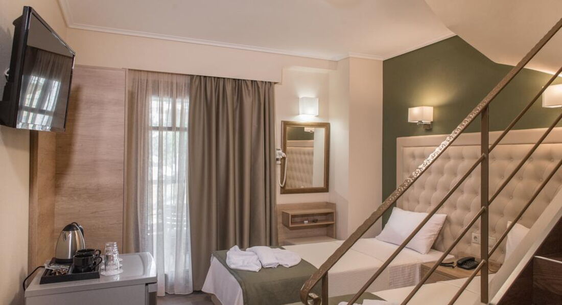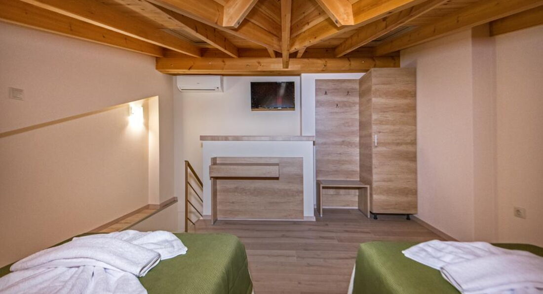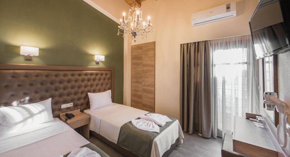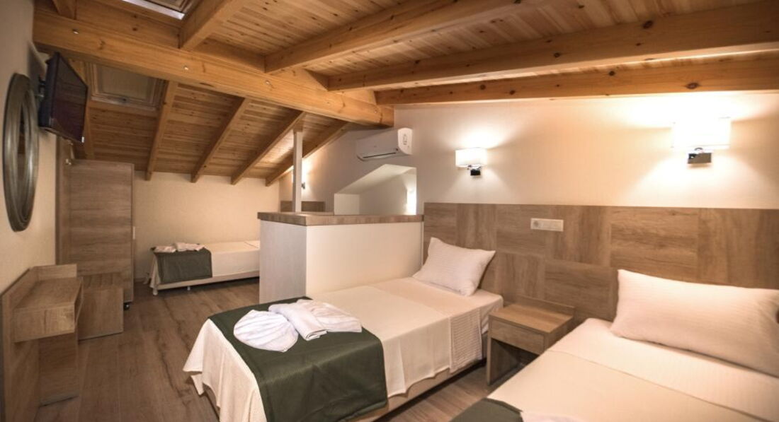 Типи номерів: Standard room (осн. ліжко – два односпальні або двоспальне ліжко, дод. – односпальне ліжко, макс. 3 чол., 20 м2); Suite 4 pax (дворівневі номери, спальня, осн. ліжко – двоспальне ліжко або 2 односпальні, дод. – 2 односпальні, макс. 5 чол., 35 м2).У номері: набір для приготування чаю/кави сейф: є кондиціонер: індивідуальний банні приналежності телефон підлога: керамічна плитка капці фен: є балкон або тераса ТБ: супутникове душ Інтернет: Wi-Fi міні холодильник