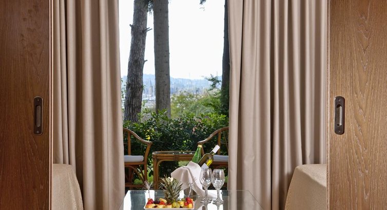 Типи номерів: main building or bungalow BV/GV/SV/SF (вид на затоку, на сад, на море, прямий вид на море, осн. ліжко – 2 односпальні або двоспальне, додаткове – односпальне або розкладне ліжко, номери дійсні як для основної будівлі (23 м2), так і для бунгало (крім BV, 26 м2), макс. 3 або 3+1 чол.), є можливість об'єднання номерів; main building or bungalow GV private pool (вид на сад, розташовані в головній будівлі або в комплексі бунгало, осн. ліжко - 2 односпальні або двоспальне, додаткове - односпальне або розкладне ліжко, розташовані в головній будівлі, індивідуальний басейн, макс. 3 чол. ., у головному будинку 23 м2, у комплексі бунгало 26 м2); superior main building SF (прямий вид на море, однокімнатний номер, осн. ліжко – 2 односпальні (двоспальне за запитом), макс. 2 чол., 28 м2); family main building or bungalow GV (вид на сад, двокімнатний номер, спальня та вітальня з розсувними дверима, осн. ліжко – двоспальне, додаткові – 2 односпальні, номери дійсні як для основної будівлі (28 м2), так і для бунгало (36) м2), максимум 4 чол.); family room main building BV (вид на затоку, розташовані в головній будівлі, двокімнатний номер, спальня та вітальня з розсувними дверима, осн. ліжко – двоспальне, дод. – 2 односпальні, макс. 4 чол., 28–36 м2); family bungalow SV (вид на море, розташовані в комплексі бунгало, двокімнатний номер, спальня та вітальня з розсувними дверима, осн. ліжко – двоспальне, доп. – 2 односпальні, макс. 4 чол., 28–36 м2); deluxe suite SV 1 bedroom MB (вид на море, розташований на 4 поверсі основної будівлі, двокімнатний номер, спальня та вітальня (без дверей), осн. ліжко – king size, дод. – софа, макс. 3 чол., 73 м2) ; executive suite SV 2-bedrooms main building (вид на море, розташований на 4 поверсі основної будівлі, 2 спальні та вітальня (без дверей), основні ліжко – двоспальне, додаткові – 2 односпальні ліжка та софа, 2 ванні кімнати, макс. 5 чол., 107 м2); executive suite 1-bedroom bungalow SF pool (прямий вид на море, розташований в комплексі бунгало, двокімнатний номер, спальня та вітальня з розсувними дверима, осн. ліжко – двоспальне, додаткові – софа, тераса з індивідуальним басейном, макс. 3 чол. , 64 м2); junior suite bungalow SF private pool (вид на море, розташований в комплексі бунгало, однокімнатний номер, спальня з вітальнею, осн. ліжко – двоспальне, тераса з індивідуальним басейном, макс. 2 чол., 36 м2); presidential suite 2-bedrooms sea view private pool (вид на море, розташований на верхньому поверсі основної будівлі, 2 спальні і вітальня з дверима, осн. ліжко – king size, додаткові – 2 односпальні, 2 ванні кімнати, обладнана міні-кухня, велотренажер, тераса 94 м2 з індивідуальним басейном та джакузі, макс.4 чол., 97 м2).У номері: сейф: у номері, безкоштовно (електронний, laptop size) набір для приготування чаю/кави зміна білизни: щодня room service: є (07:00–01:00) банні приналежності кондиціонер: центральний (з індивідуальним керуванням/опалення, безкоштовно) зміна рушників: щодня прибирання номера: щоденно телефон підлога: ламінат (в основному будівлі); плитка (у бунгало) радіо капці балкон або тераса фен: є ТБ: супутникове російських каналів: 2 міні-бар платно (по прибутті – вода та пляшка вина безкоштовно) Інтернет: Wi-Fi, безкоштовно халат ванна або душ пляжні рушники Додатково: після прибуття пляшка мінеральної води та пляшка вина, кошик з фруктами для гостей superior main building SF, main building or bungalow SF, сімейних номерів. У executive suite, deluxe suite, junior suite pool, presidential suite: пляшка мінеральної води, кошик із фруктами, квіти – щодня.