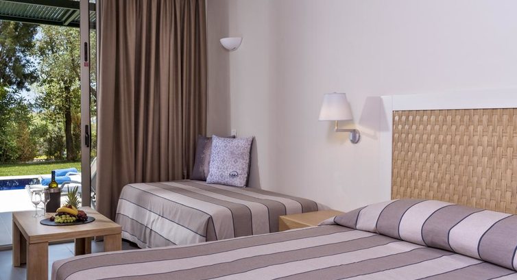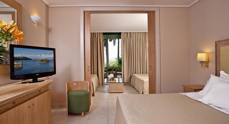 Територія та послуги: Інтернет-кафе безкоштовно бізнес-центр (сканер, факс, принтер – безкоштовно) перукарня (за запитом, платно) автобус до центру міста (до центру міста Корфу 1 раз на день, безкоштовно) ювелірний магазин спа центр хімчистка (за запитом, платно) криті басейни: 1 (в SPA, що підігрівається, з прісною водою, 70 м2, безкоштовно) бари: 2 конференц-зали: 1 (115 м2, на 40 чол.) кімната для багажу ресторани: 1 (з окремою секцією "тільки для дорослих") пральня (за запитом, платно) ресторани a la carte: 3 (середземноморська та міжнародна кухня, ресторан на пляжі (на обід) лікар за викликом (платно) біля басейну рушники: безкоштовно кімната для гри в карти басейни: 1 (відкритий з морською водою, 375 м2) паркування є Wi-Fi безкоштовно обмін валюти ТБ-зал біля басейну парасольки, шезлонги: безкоштовно Розваги та спорт: сауна безкоштовно парна безкоштовно прокат тенісних ракеток та м'ячів безкоштовно джакузі безкоштовно масаж платно (9 кабінетів для різних видів терапії у SPA-центрі) освітлення тенісного корту платно уроки тенісу платно більярд платно прокат велосипедів (платно) тренажерний зал безкоштовно аквааеробіка безкоштовно дартс безкоштовно волейбол на пляжі безкоштовно водні види спорту платно вечірнє шоу безкоштовно (у таверні на пляжі, 2 рази на тиждень) електронні ігри платно настільний теніс безкоштовно бочче безкоштовно жива музика безкоштовно (фортепіано, 4 рази на тиждень) тенісний корт безкоштовно (синтетичне покриття та кварцовий пісок) Для дітей: дитячий майданчик (огороджено, покриття – штучне) дитячий басейн: з прісною водою (розташований у дитячому містечку) дитячий клуб (4–12 років, з 10:00 до 18:00, щоденно) послуги няні: за запитом, платно дитяче ліжечко: за запитом, безкоштовно (ліжечко-манеж) дитячі стільці в ресторані: є Живлення: BB HB FB Пляж: вхід у море: піщаний піщаний (2 піщані пляжі, відкрита берегова лінія) на пляжі парасольки, шезлонги: безкоштовно душ кабінки для перевдягання платформа (дерев'яна, обладнана для зручності сходами) на пляжі рушники: безкоштовно До оплати приймаються кредитні картки: Visa, MasterCard, Diners Club, American Express, Maestro.