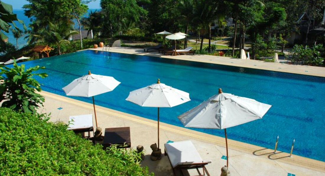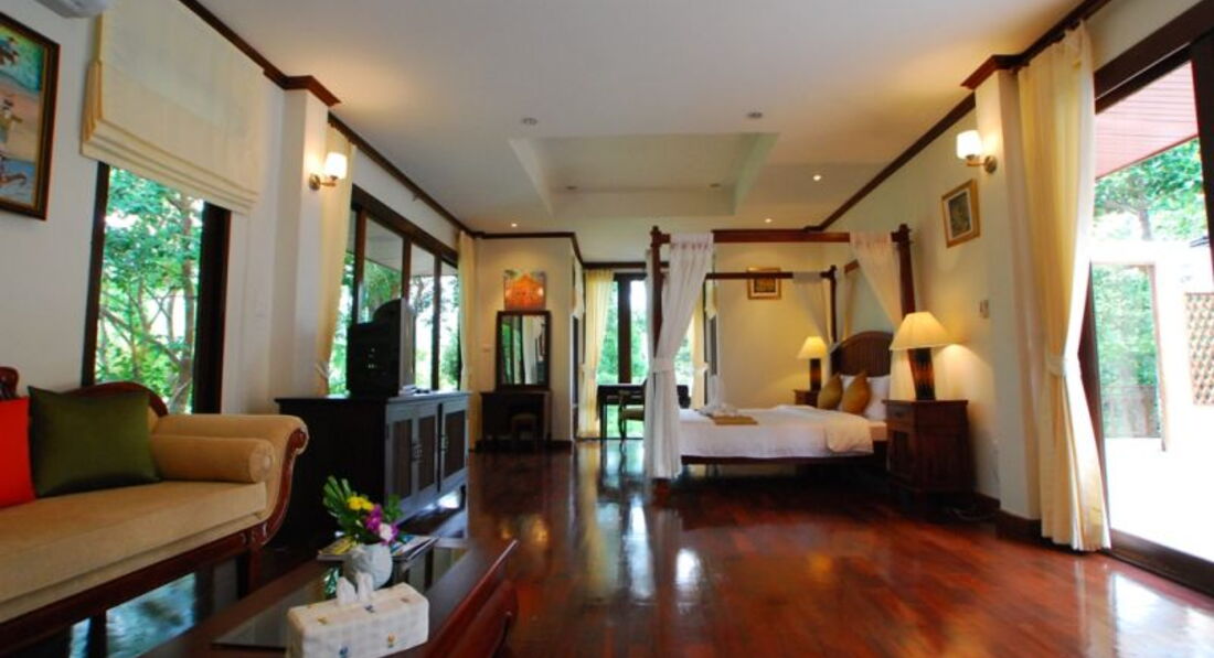 На пляже Mangroove Bay. Большая и зеленая территория. Во всех номерах вид на море. В бухте почти не бывает сильных волн. Wi-fi – бесплатно в лобби, в номере – 2 ч – 150 бат. Депозит – 200 $. Выйти некуда, такси до центра – 1000 бат (ехать 40 мин.), до ближайшего магазина – 10 мин езды. Можно взять машину напрокат в отеле. Для спокойного, уединенного отдыха.