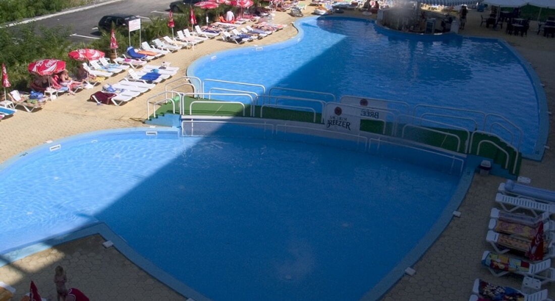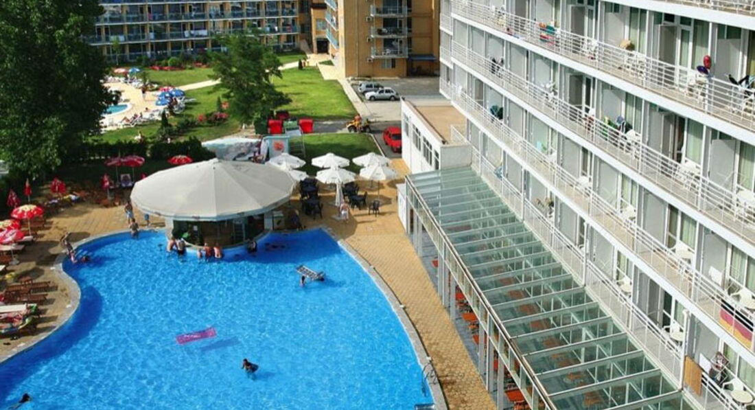 Буквально вчера приехали из солнечной Болгарии. Могу сказать, что отель не из новейших, явно на 3 звезды. Расположен очень удобно, рядом магазины, кафешки, бары, а самое главное рядом с морем. Бассейн оставляет желать лучшего, лежаки не удобные, а самое не приятное очень много муравьев. Если хотите хорошо отдохнуть, лучше ходите на пляж. Да, лежаки и зонты платные, но вы точно не пожелеете. Море очень чистое, волны периодически большие, но на надувном матрасе самое то.