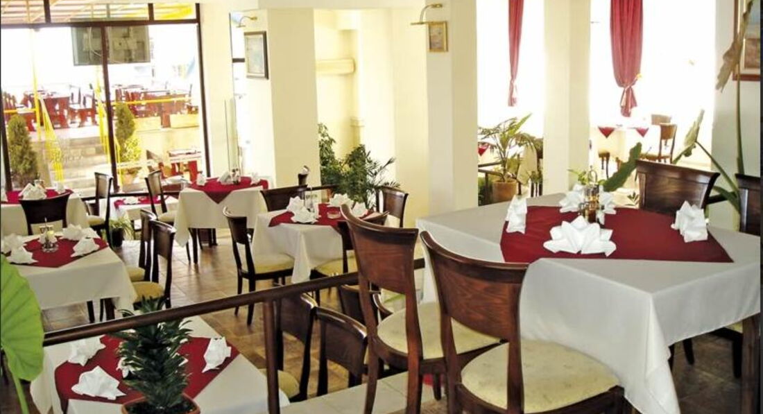 Ехали от Балкана. Не первый раз . Покупали в Петербургском офисе. Менеджер Яна. Всё , что касается их работы-безупречно. Всё чётко и конкретно. Искреннее спасибо. Теперь -отель. Хорошее здание, прекрасно спроектированное. Идеальное расположение. На границе Солнечного Берега к Несебру. Тихо, нет жутких запахов в центральной части С. Б.. Большая внутренняя территория с большим ,чистым бассейном. От моря-метров двести- пять минут , удобно. Пляж отличный, мелкий песок. Разумное количество народа. Море чистое. Но...туалетов-нет, кабинок-нет, урн-нет.. В отеле большой , удобный холл. В нём б. п. интернет. Номера большие . удобные. Есть зона в здании, где постоянный технологический шум. Это сразу ощущается. В номерах-забавно. Телевизоры эпохи развитого социализма....., В мусорных ведёрках пакеты не вкладывают...., просто вытряхивают...,не работал душ,проблемы с кондиц....,но волшебная бумажка мгновенно решает любой вопрос. Подушки из обрезков поролона,кровать-из двух матрасов- удобная. Полотенец по три. Меняли пару раз. У уборщиц НЕТ пылесосов. Веники без ручек. Мусор выносят каждый день-всё.... Мы не в обиде. Все наши вещи лежали, как нам удобно. Чайника в номере нет. На балконе -своя верёвка и прищепки(купили). Главное- номер выходил во дворик на бассейн- это тихо и спокойно. Большое достоинство. На ресепшн -прекрасные мальчики, доброжелательные и приветливые. Им-спасибо. В столовой-только завтраки. На ужине один раз видели одну пожилую пару...... Всё.... Кофе-ржаной напиток из бойлера. Чай-жидкость из другого бойлера. Чайных ложек-нет. Сыр-один-пальма... Масло-микс. Яичница, фасоль. макароны,картошка. Помидоры, огурцы, оливки. Арбуз, яблоки, пару раз персики, сливы. Один вид кексиков. Колбасные изделия-тоже соотвтствующие.... Персонал вежливый и приветливый. Они не виноваты... Рядом в ресторанчиках по 5-7 евро разное мясо с вином и пивом, ОЧЕНЬ вкусно. Продукты надо покупать в маркете- МЛАДОСТЬ.Десять мину идти. Автобусное сообщение- прекрасное и недорогое.