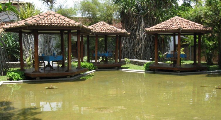 Бассейн небольшой с живописным пальмовым островком, прикольно ночью подсвеченный (даже видно жмени хлорки на дне). В ресторанчике у бассейна кормят добротно (без турецкого разнообразия, но выбрать не сильно острое блюдо реально). За ужином поварята устраивают fireshow поджаривая шпинат или рыбу на сковороде. Через день местный джазбенд и rockband, по выходным danceband пытается очаровать ланкийским колоритом.