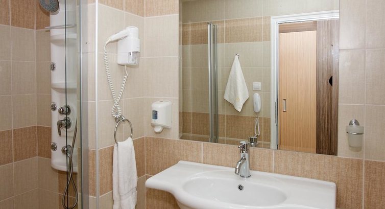 Номер недавно после ремонта (№374), мебель свежая, кондиционер работал исправно, хорошая душевая кабина, сантехника работала без нареканий, фен мощный. В номере был чайник, но мы им не пользовались, равно как и телевизором.