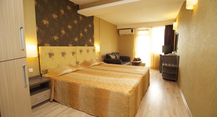 Отель с собственным миниаквапарком, что создает некоторое перенаполнение, в районе аквапарка, т.к. за деньги пускают не проживающих в отеле, проживающие пользуются бесплатно. Впрочем это сильно не мешало. Не стоит сравнивать аквапарки при отелях например в Египте. Питание только завтрак, но поверите это даже лучше, вокруг полно кафе где вас очень вкусно покормят, и даже в ресторане самого отеля. Отель хоть и на первой лини,но до пляжа идти метров 100-200. На пляже песок, и ненормальные бойгарды, при малейших волнах всех отгоняли к берегу. недалеко от Несебра (старого) можно доехать на паровозике или пройтись.