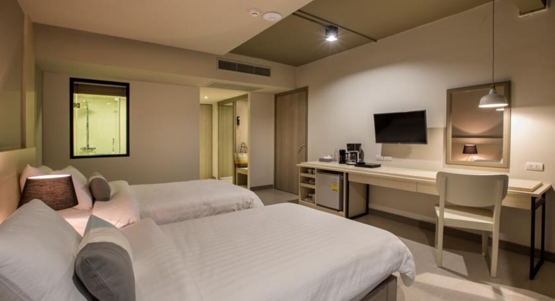 Номер просторный, две кровати (была с ребенком 7 лет), пол кафель, по ТВ каналы только анг. и местные, кондиционер, сейф в номере- все как полагается.