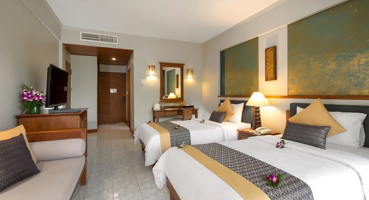 Територія та послуги: • 2 басейни (7.00-19.00) • ресторани • 4 бари • ліфт • 4 конференц-зали (60, 80, 180, 300 осіб) • Wi-Fi у лобі (безкоштовно) • тренажерний зал (безкоштовно) • пральня Для дітей: • 2 дитячі басейни (7.00-19.00) • міні-клуб • стільці в ресторані • дитяче ліжечко • няня (платно) Живлення: • BB – тільки сніданки • HB – 2-разове харчування • FB - сніданки, обіди, вечері • AI – все включено • HB+, FB+: додатково 2 напої на особу під час обіду/вечері (прохолодні напої, столове вино, пиво місцевих марок) Система "все включено": сніданок – шведський стіл; обід та вечеря - фіксований вибір страв. Напої (всі ресторани/бари) - 3 коктейлі або 6 пляшок пива 0,33 місцевих марок - на день (для дітей: 3 коктейлі або 6 прохолодних напоїв). Ресторани та бари: • The Boat Restaurant: меню та шведський стіл, тайська та міжнародна кухня. • Junk bar (біля пляжу, з 10:00 до 23:00), Pool bar (біля басейну, з 10:00 до 19:00), Skipper Pool bar & Restaurant (біля басейну, з 10:00 до 19:00) ): прохолодні, місцеві та імпортні алкогольні напої, коктейлі, закуски. Пляж: Громадський піщаний пляж. Лежаки, парасольки, пляжні рушники – безкоштовно.