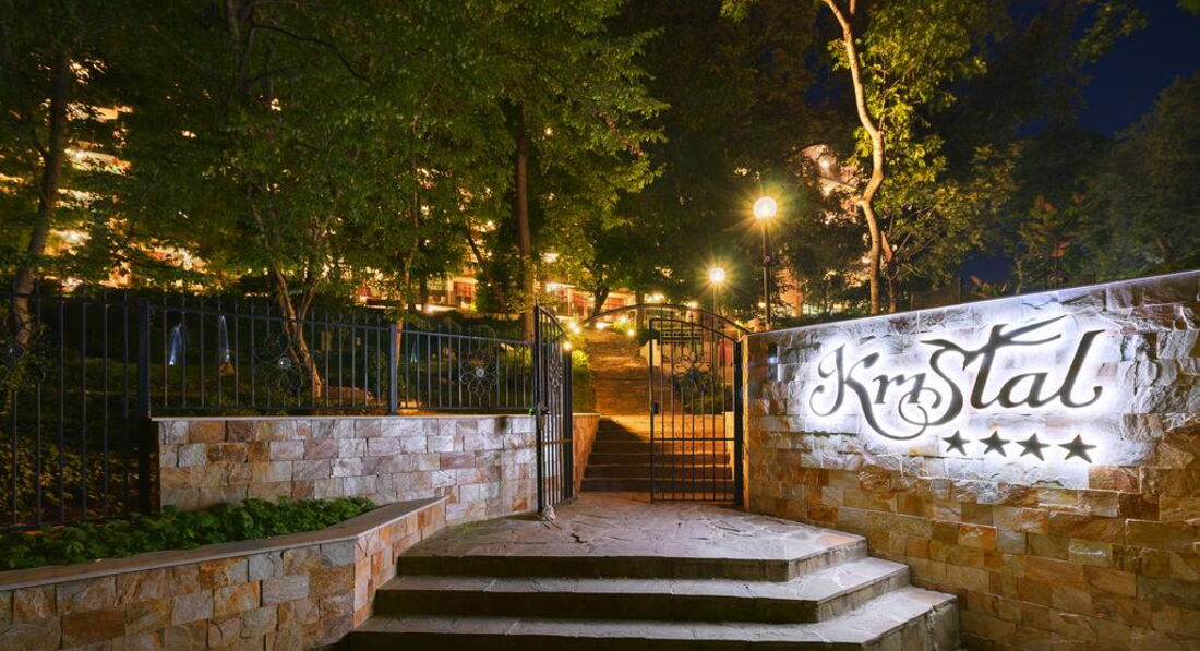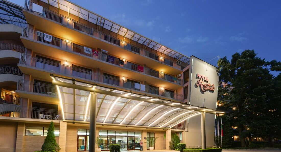 Елегантний та сучасний готель «Kristal» розташований на височині в тихій місцевості в оточенні природного парку курорту. Різноманітність пропонованих послуг та унікальна природа створюють чудове поєднання для повноцінного відпочинку. Гості готелю оцінять чудові краєвиди на мальовничий парк та квіткові сади. Сусідні готелі Perla, Madara, Allegra.