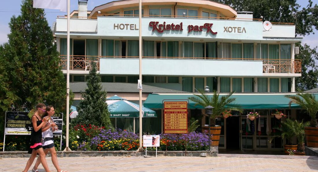 Ездил в июле 2013 года отдыхать с другом в Kristel Park, что расположен в болгарском посёлке Кранево. Впечатления получились достаточно противоречивыми. Номер, в котором жили: первоначально заселили нас двоих в номер с одной кроватью. После нашего возмущения ресепшионист ответил, что такие апартаменты нам полагаются по его же документу. В итоге он согласился занести к нам раскладной диван, да только он не учёл, что после таких перемещений места свободного в нашем номере практически не осталось. Дверь даже открывалась с трудом. К тому же по условиям нам были положены кондиционер, телевизор и холодильник. Ничего этого у нас не было, был только вентилятор, который мы же убрали за полным неимением свободного места в комнате. Санузел был нормальный, но душ лил не "дождиком", а сильной струёй. (мелочь, а неприятно). Много проблем возникало с ключом, потому как обшая входная дверь не открывалась снаружи, а только изнутри. Поэтому чтобы зайти в номер, нужно постучать и ждать пока тебе откроют(а если сосед спит?). Питание: за время поездки я даже похудел. Питание однообразно и к дню эдак пятому надоело. Напитков было мало, да и те которые были, рано заканчивались и вместо них в автоматах текла просто вода. На завтрак был только один салат. Мясо было много и картофель фри был всегда. В общем (учитывая мороженое, арбузы, дыни и пиццу) оценил бы питание на 4 из 5. Хотелось бы большего разнообразия. Море: было очень мелкое(на уровне буйков метра полтора глубина) и не совсем чистое и прозрачное. Шторм был только в один из дней. Пляж по своей ширине не больше метров 30, а в длину нормальный, песчаный, чистый. Спасатель дежурит ответственно. Есть развлекаловки типа банана а катамарана. Зонты бесплатные и в малом количестве, а за шезлонги нужно платить - полтора евро за день. В общем в Болгарии почти за всё нужно платить немаленькие деньги и смотреть, чтоб не обманули в магазине, как это не раз делали со мной. Из бесплатного отметил бы воздух и песок на пляже)) персонал отеля был терпимый, только один выше упомянутый ресепшионист всем докучал. Ещё земляк называется)) Бассейн был с хлорированной водой и тоже мелковат, тренажерный зал работал. Развлечения: клубов и дискотек для молодежи совсем нету. Все развлечения исключительно детские. Детям просто рай здесь отдыхать. Даже бильярда нету во всем Кранево. В клубы надо ездить в Золотые пески. Достопримечательности в Болгарии просто отсутствуют, но можно съездить в аквапарк с шестью работающими горками, правда стоит это недёшево. Молодежи практически не было в отеле, хотя почему-то были пожилые пары в детско-молодёжном курорте. До моря мы ходили метров 500, но дорога просто ужасная ввиду того, что к морю ездят автомобили. Их очень-очень много и они не дают просто так дойти до моря, а дорога итак узкая. Вай-фай ловит на ресепшене, но он очень слабый и желающих постоянно много. Нужно идти в соседнее кафе - там лучше. Но самый главное из поездки: на такие дистанции на море нужно ездить только на самолете. Никаких автобусов и поездов. Пусть это дороже на 170 евро, но эти деньги стоят того, чтобы не стоять по 7 часов на каждой из границ, стоят того, чтобы не ехать домой 2 дня вместо 2 часов полета, стоят того, чтобы лететь спокойно как человек, а не трястись по неровным дорогам под палящей жарой с не работающими кондиционерами и закончившейся питье