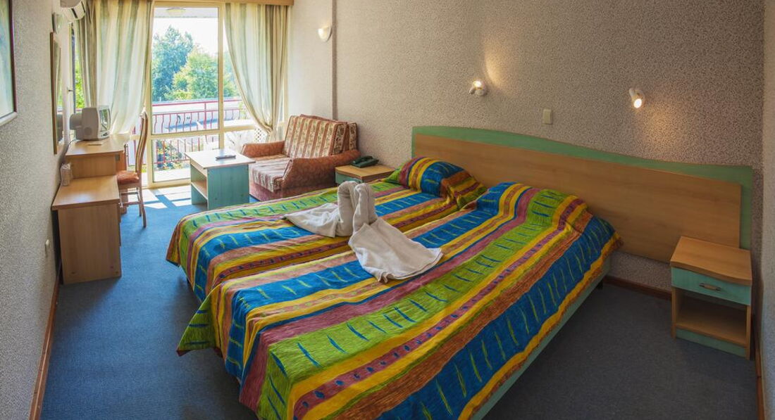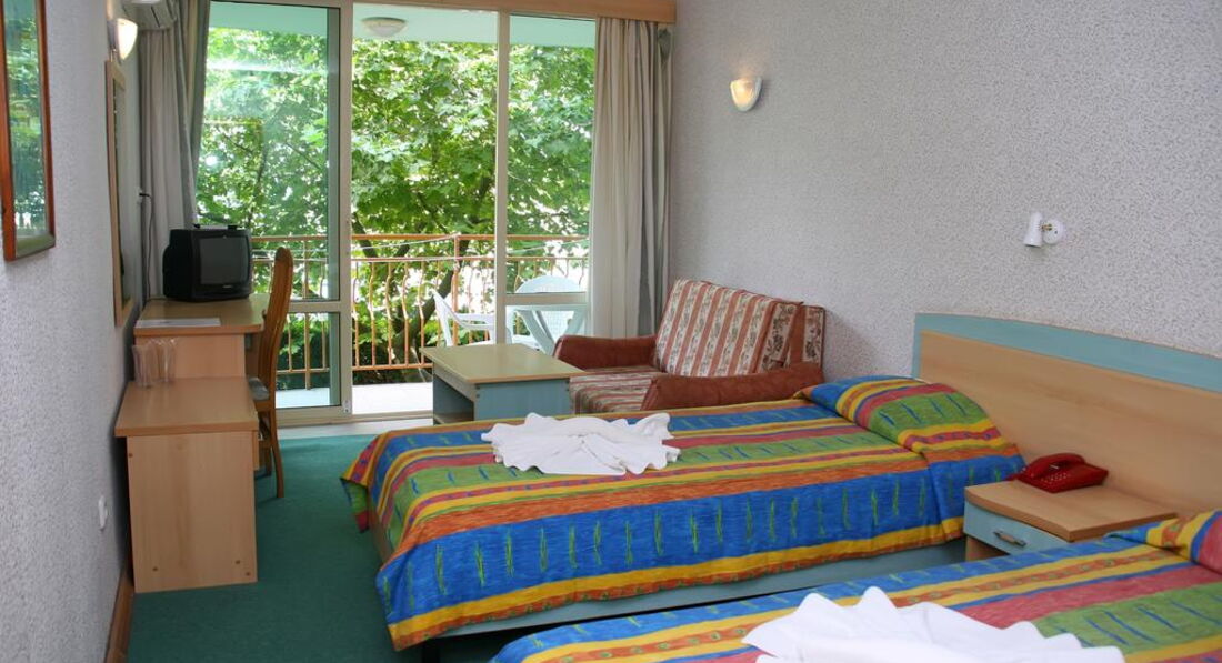 Никогда не ездите в этот отель.Худшее,что может быть в Болгарии.И это при том,что я в этом отеле пятый год подряд.Поменялись хозяева.Нынешние думают только о прибыли.Сокращены зарплаты обслуге и количество.Соответсвенно сервис на нуле.Постельное поменяли через 11 дней а полотенца только когда я их кинул на пол.Душ гель заправляют при смене клиента и не важно на сколько он приезжает на 3 дня или на 3 недели.Вместо тихого отдыха первые два этажа заселены детворой без родителей.Их селят не по 2 а по 4 человека в номер.Столовка,рестораном это не назвать просто не справляется.На входе очередь.Запускают человек по 10-15.Внутри две проблемы,негде сесть или нечего есть.Хотя указано,что все включено.Впервые в жизни попробовал ледяные спагетти под жирным томатным соусом.В июле в Болгарии не было фруктов.Менеджер сказал,что очень дорого.Выносят пару подносов и привет.Кто успел тот съел.А отбирать в драку кусок арбуза у девченки я не могу.Получить бокал вина на обед не возможно.Алкоголь только с 15 час.То есть после обеда.И до 21 то есть не до конца ужина.Анимация-10 мин в басейне.Потом попытка научить детей танцам в баре с подачей спиртного.Вобщем отель был,но уменр.Не советую не кому.Болгария моя любимая страна и там можно найти места получше.В том же Кранево Бельвью в Албене Калиакора.
