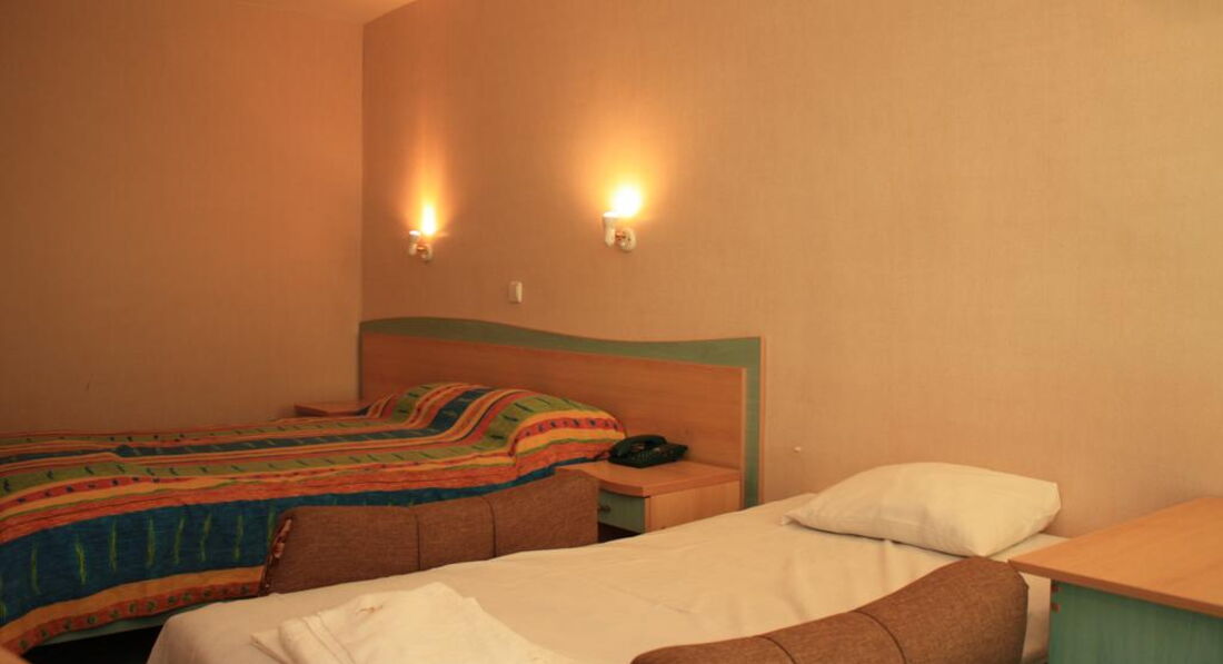 Відпочивали з 7-річною дитиною в липні 2011. Перші враження від готелю - ніхто тебе там не чекає...Коли ми приїхали поселяти нас не було кому. Підійшовши на рецепцію з проханням поселити нас в номер, молодик зробив вигляд, що не розуміє мене. Через хвилин 7 підійшла жіночка років 50 і сказала зачекати. Пройшло ще 15 хв, в нас взяли документи і провели в номер. Номер відповідає тому, що є на фотографія - просторий, чистий....Проте при замовленні путівки ми просили номер для некурящих і з виглядом на басейн - зробили з точністю до навпаки: номер для курців, балкон виходить на дорогу. Коли в сусідньому номері хтось палить, відповідно з балкону і з витяжки в туалеті весь дим йде в кімнату. Поблизу всенічна дискотека - музика цілу ніч, а в годині 4-5 ранку починають звідти розходитись, вирішувати хто з ким ночує і т.д.... Мінімуму комфорту...