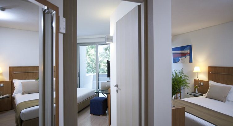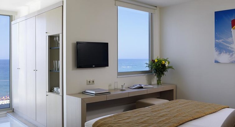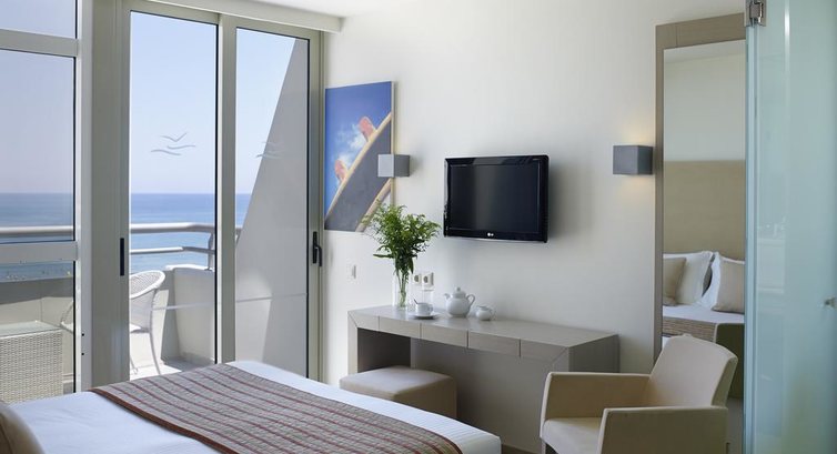 Типи номерів: 32 Twin Superior Side Sea View (20 кв.м., макс. розм. 3 чол.) - спальня, ванна кімната, балкон з видом на море 27 Twin Superior Sea View (20 кв.м., макс. розм. 3 чол.) - спальня, ванна кімната, балкон з видом на море 9 Junior Suite Front Sea View (26 кв.м., макс. розм. 3 чол.) - спальня, ванна кімната, вітальня, міжкімнатних дверей немає, балкон/тераса з видом на море 10 Family Junior Suite (34 кв.м., макс. розм. 4 чол.) - 2 спальні, ванна кімната, балкон 5 Deluxe Suite Front Sea View (32 кв.м., макс. розм. 3 чол.) - однокімнатний номер: складається із зони спальні та вітальні без міжкімнатних дверей; ванна кімната, балкон/тераса з видом на мореУ номері: фен центральний кондиціонер телевізор (3 російськомовні канали) телефон (платно) електричний чайник міні холодильник набір для приготування чаю/кави сейф Wi-fi