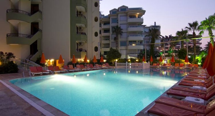 В 2009 году отель классифициуется как 4*, но по уровню сервиса ближе к 3*+. Отель расположен через дорогу от пляжа, есть два подземных перехода. Пляж песчаный, сначала вход пологий с мелкой галькой, потом крупная галька. За пляжные полотенца взимается залог, матрацы тоже за доп. плату. В отеле отдыхают преимущественно русские туристы, поэтому есть русскоговорящий персонал и анимация. Два раза в неделю за отелем организуется приезжий местный базар. В определенные дни из отеля туристов возят в центр Алании на дискотеки. Отель подойдет для отдыха молодежи