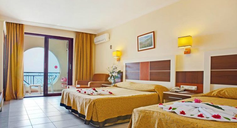 Пишу отзыв в первый раз,хотя отдыхаем за границей очень часто!Начну сначала:приехали в отель в 14-00,заселили всех в течении 15 мин,,проводили в номер.Номер старенький,с видом на море-1 корпус,(я человек очень привередливый),но все чисто,все работало.Убирались каждый день,полотенца меняли по требованию,а вот постельное белью не меняли ни разу,не знаю,как у других,но у нас белье было чистое.Сауны обещанной бесплатной на территории отеля нет,только платно.Питание и обслуживание в ресторане на 5 с плюсом.Еда практически круглосуточно,разнообразные фрукты,мороженое,вечером дегустации шампанского или напитков,каждый вечер готовили на гриле,вообщем кормили очень,очень вкусно.Персонал очень приветливый,обслуживали мгновенно!!!!