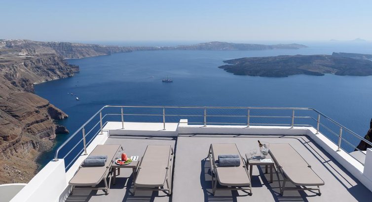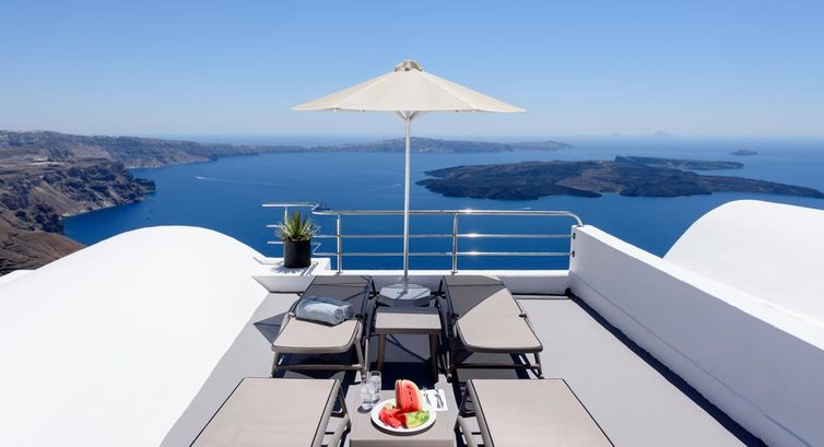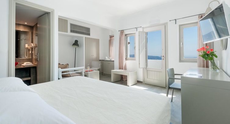 Готель розташований на острові Санторіні, в районі Імеровіглі, за 9 км від аеропорту, за 2 км від міста Фіра.